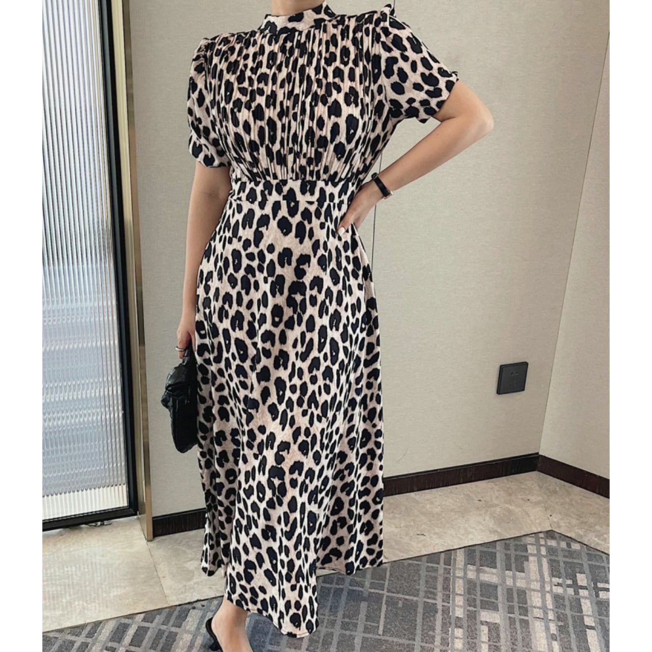 クラシックなレオパード柄が印象的なマキシワンピース。