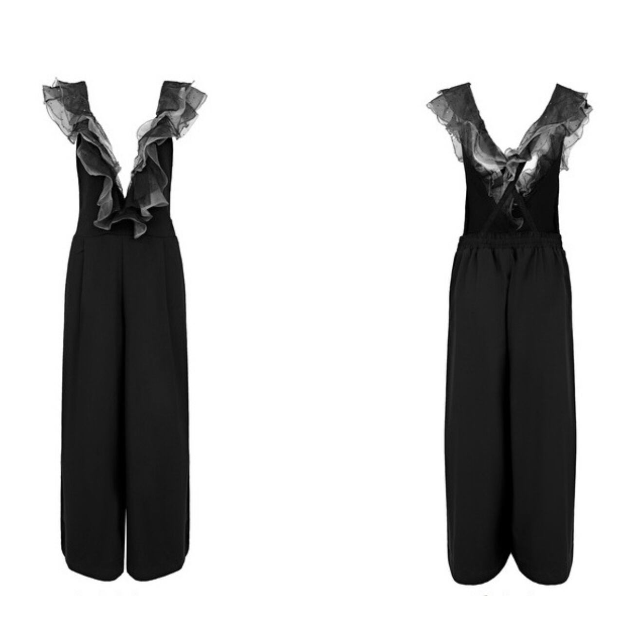 Polka dot mesh black wide leg pants S1538