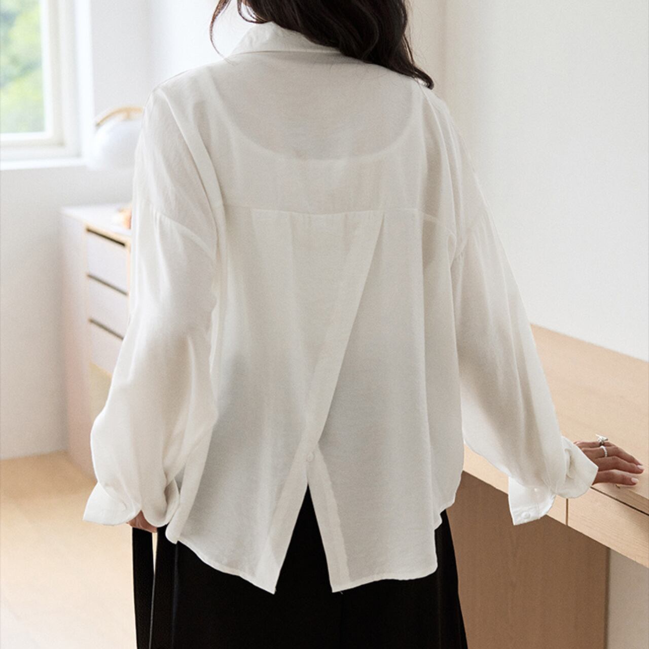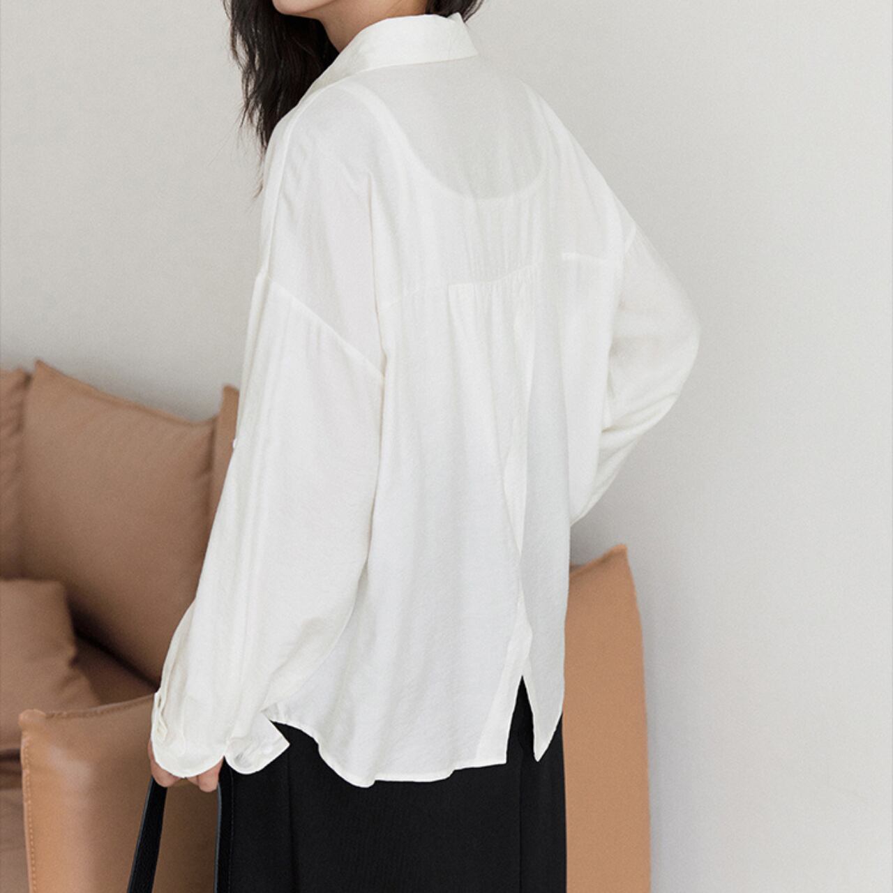 クラシックなシャツ襟で顔周りをすっきりと見せ、ロールアップしやすい袖口で表情変化も自在です。