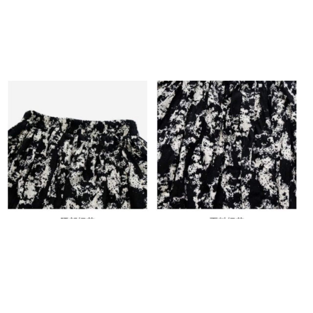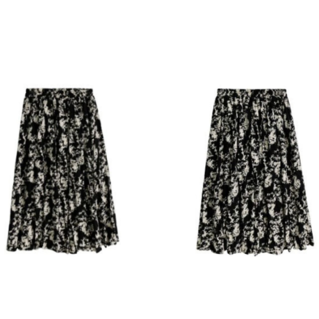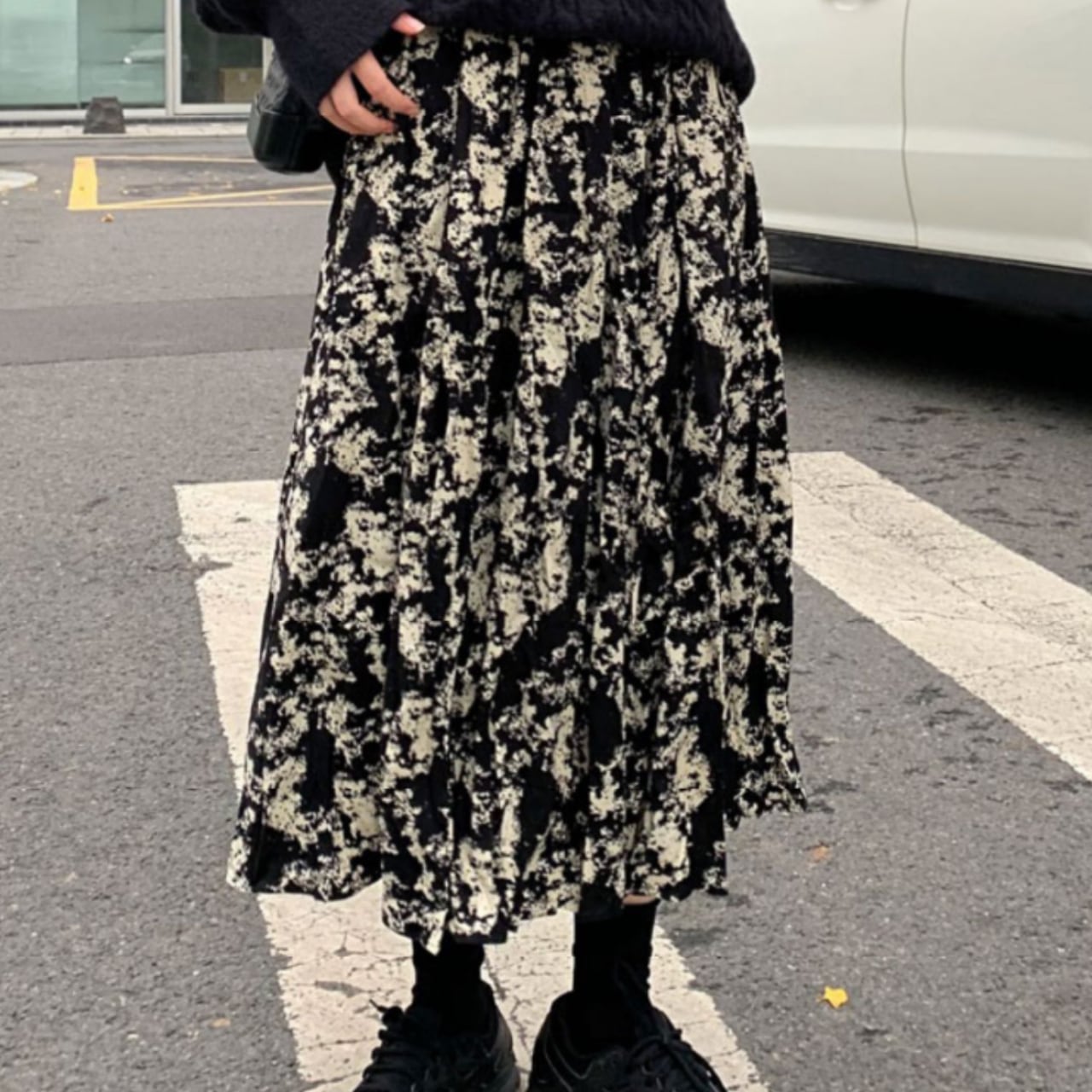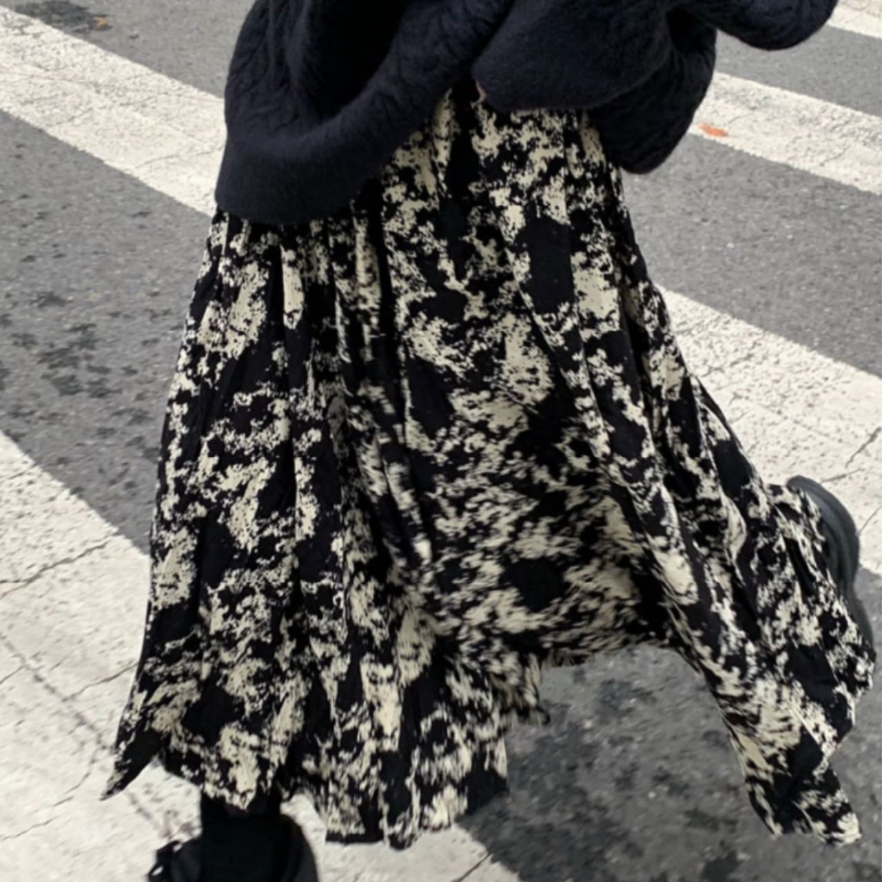 ブラックベースに映える柄デザインが美しいプリーツスカート。