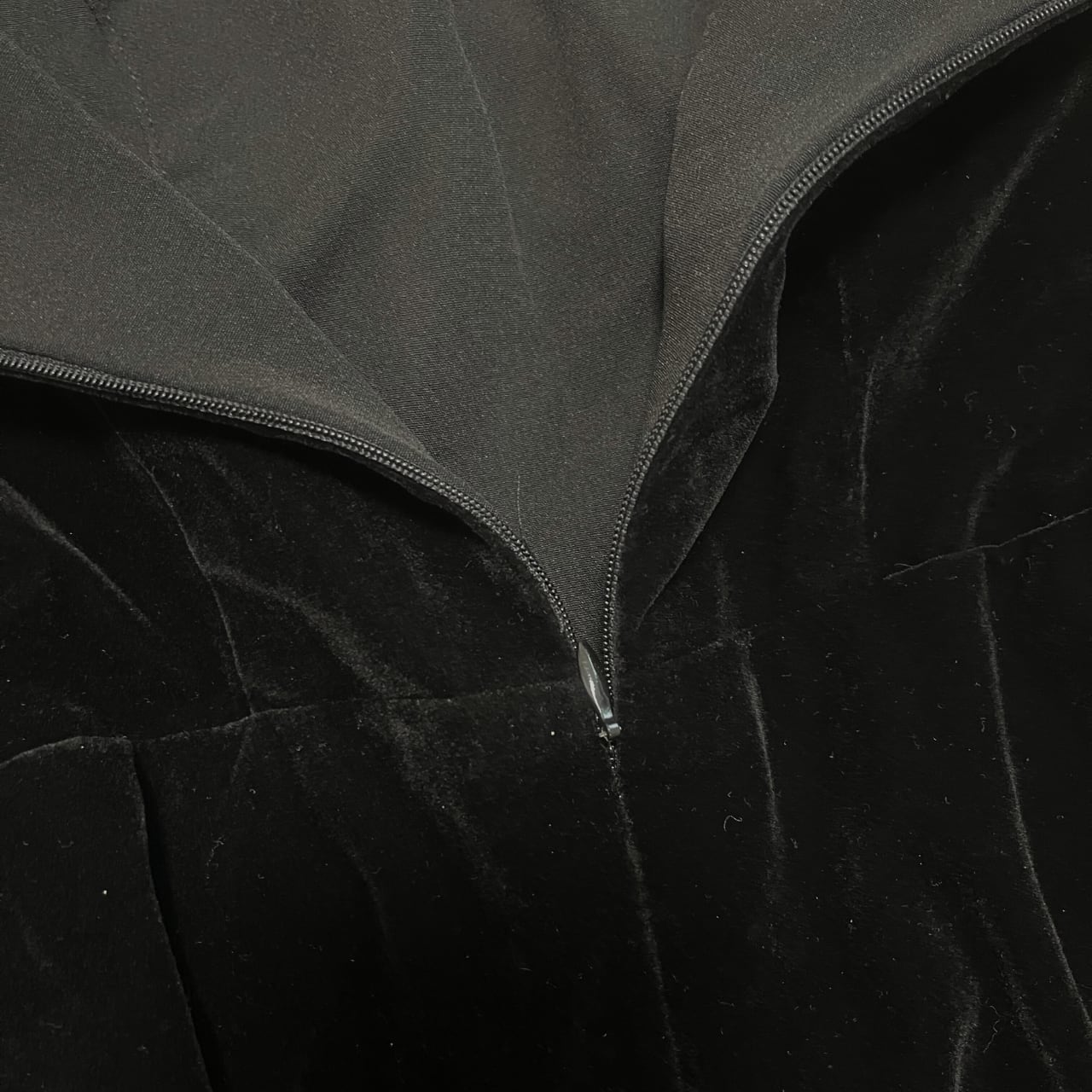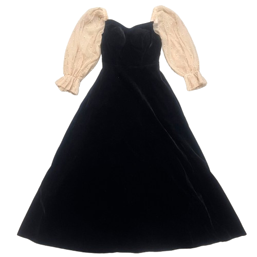 ブラックのベルベットにシアースリーブがマッチしたワンピース。