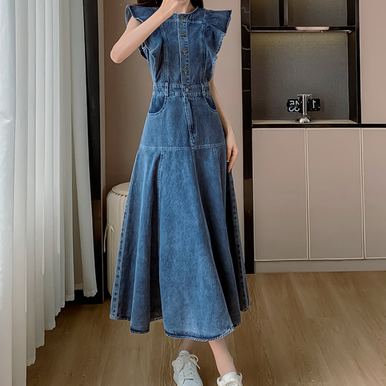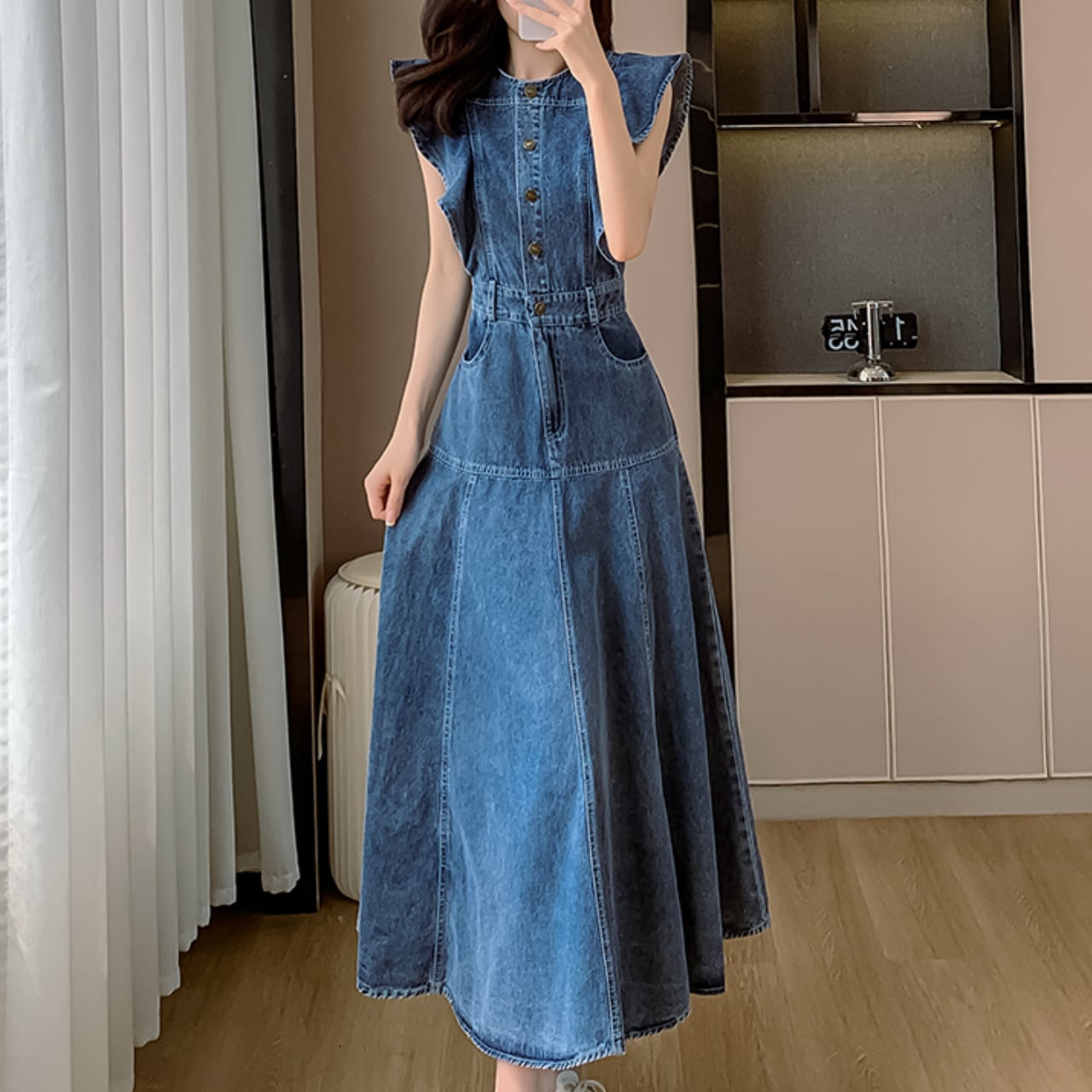 クラシックなデニムの風合いを活かした、ノースリーブワンピース。