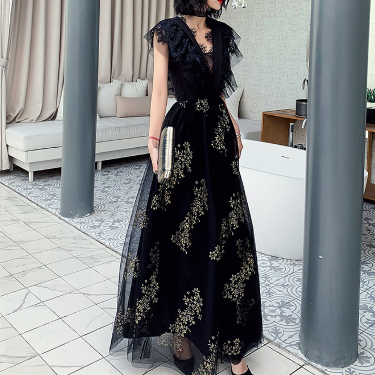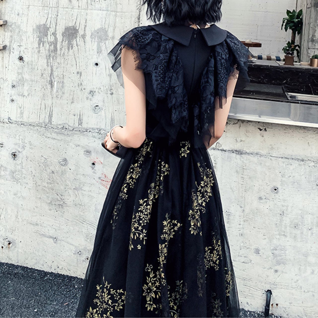 〜黒に咲く、金色の物語〜 洗練されたブラックレースのVネックデザインが、シンプルでありながらも際立つ存在感を放つ特別なドレス。 Vネックラインが美しいデコルテを演出し、ドレス全体に施されたレースが繊細さをプラス。 モダンな都市空間にも自然に溶け込む、計算された美しさです。 繊細な金糸刺繍が織りなすフラワーモチーフが、ベースの深いブラックに上品な印象を与えます。 足首まで優雅に流れるマキシ丈、胸元の立体フリルにウエストリボンで美しいシルエットを演出するアイテムです。 ✔️おすすめのスタイリング ・エレガントなヒールや華やかなクラッチバッグと合わせて、洗練された印象を演出。 ・シンプルなジュエリーを取り入れることで、より一層特別な日を際立たせます。 ・軽めのショールやジャケットを羽織って、シーズンに合わせたアレンジも楽しめます。 ■サイズ XS 胸囲:80cm ウエスト:64cm S 胸囲:84cm ウエスト:67cm M 胸囲:87cm ウエスト:70cm L 胸囲:90cm ウエスト:74cm XL 胸囲:93cm ウエスト:77cm 2XL 胸囲:96cm ウエスト:80cm 3XL 胸囲:100cm ウエスト:84cm ※採寸方法により1〜3cmの誤差がある場合がございます。 ■カラー ブラック ■商品番号 S1607 ・・━━・・━━━━━━━・・━━・・━━・・ 【お届けについて】 当ショップの商品は海外より取り寄せ・発送となりますので、ご入金から3〜4週間前後での発送となります。 【お支払い方法について】 ・クレジットカード決済(VISA/Master/JCB/AMERICAN EXPRESS) ・キャリア決済(docomo/au/Softbank/Y!mobile) ・あと払い Pay ID決済 【注意事項】 ・商品の在庫切れや生産中止、生産遅延が生じることがありますので、ご了承ください。 ・こちらは輸入品であり、日本製品とは検品基準が異なる場合があります。新品未使用品でも、わずかな汚れや傷が見受けられることがあります。 ・イメージ違いやサイズ・カラー相違による返品・交換はお断りしております。 ・お手持ちのスマートフォンやパソコンの環境によって、商品のお色味が異なる場合があります。 ・発送時期によってデザインや素材、細部が変更されることがあります。 ご購入前にこちらをお読みください →https://solemy.base.shop/blog/2024/11/20/121101 ・・━━・・━━・・━━・・━━・・━━・・━━・・