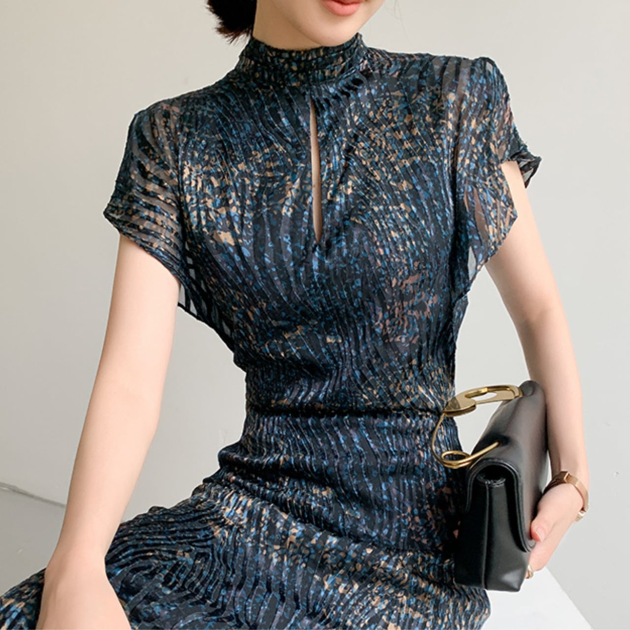 洗練されたハイネックデザインが、上品な大人の女性を演出します。
