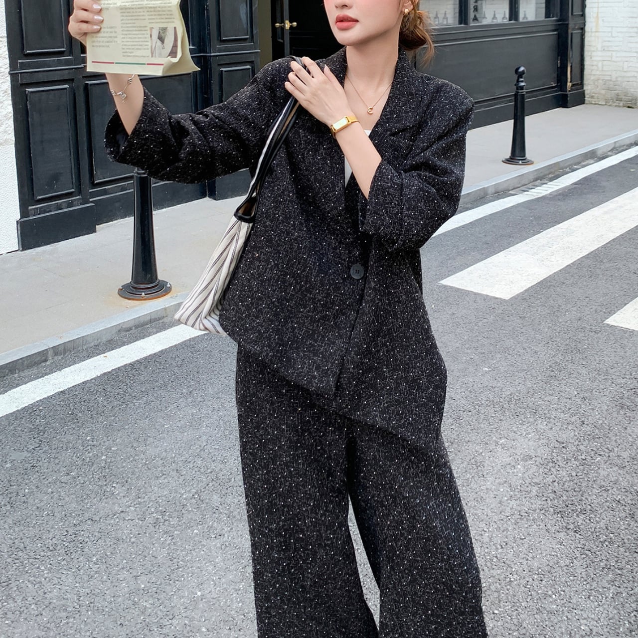 パンツはゆったりとしたワイド感がありながらも、だらしなく見えない計算されたシルエット。ウエストゴムで履き心地も抜群です。