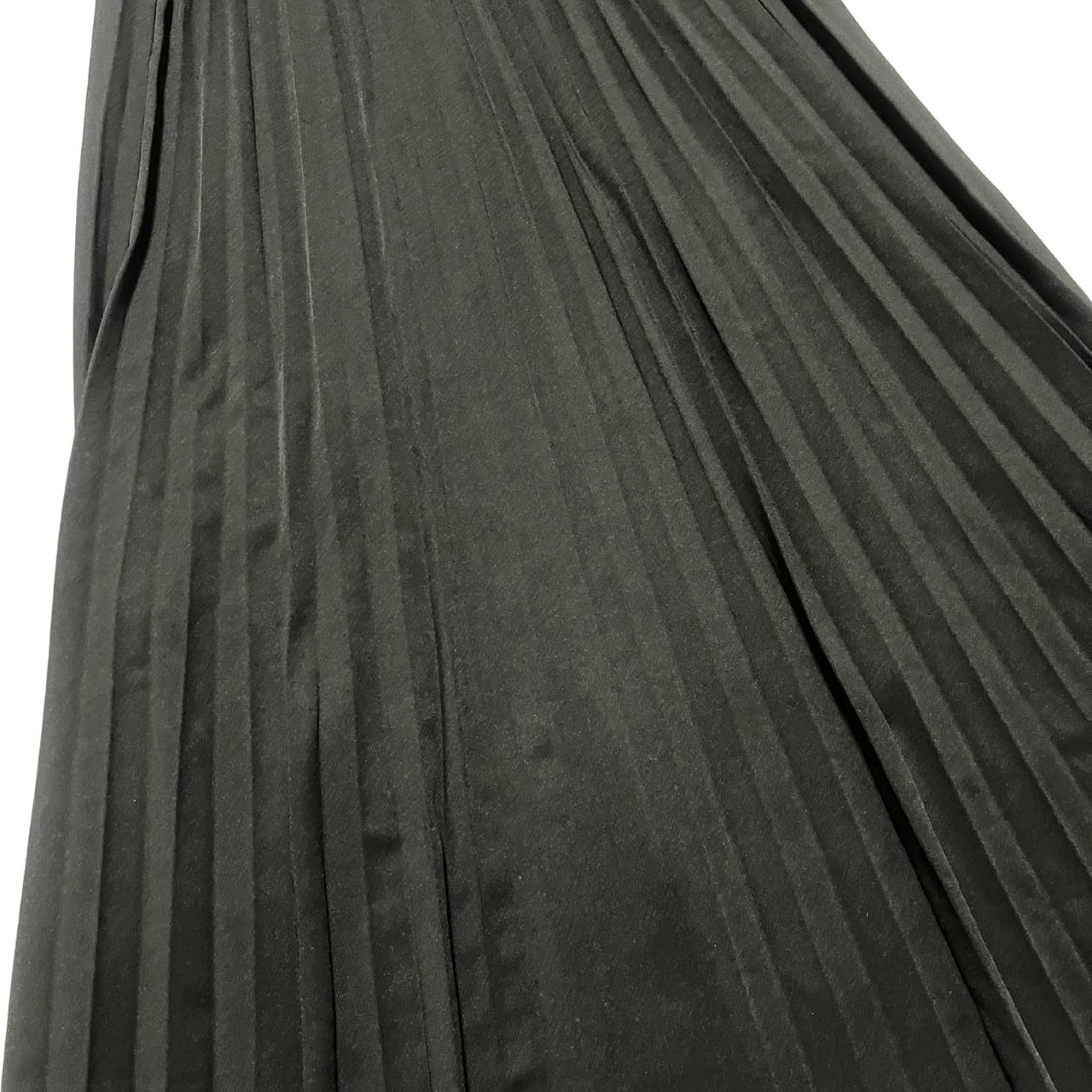 プリーツの縦ラインが脚長効果を演出し、ベストのVネックが首元をすっきり見せます。
