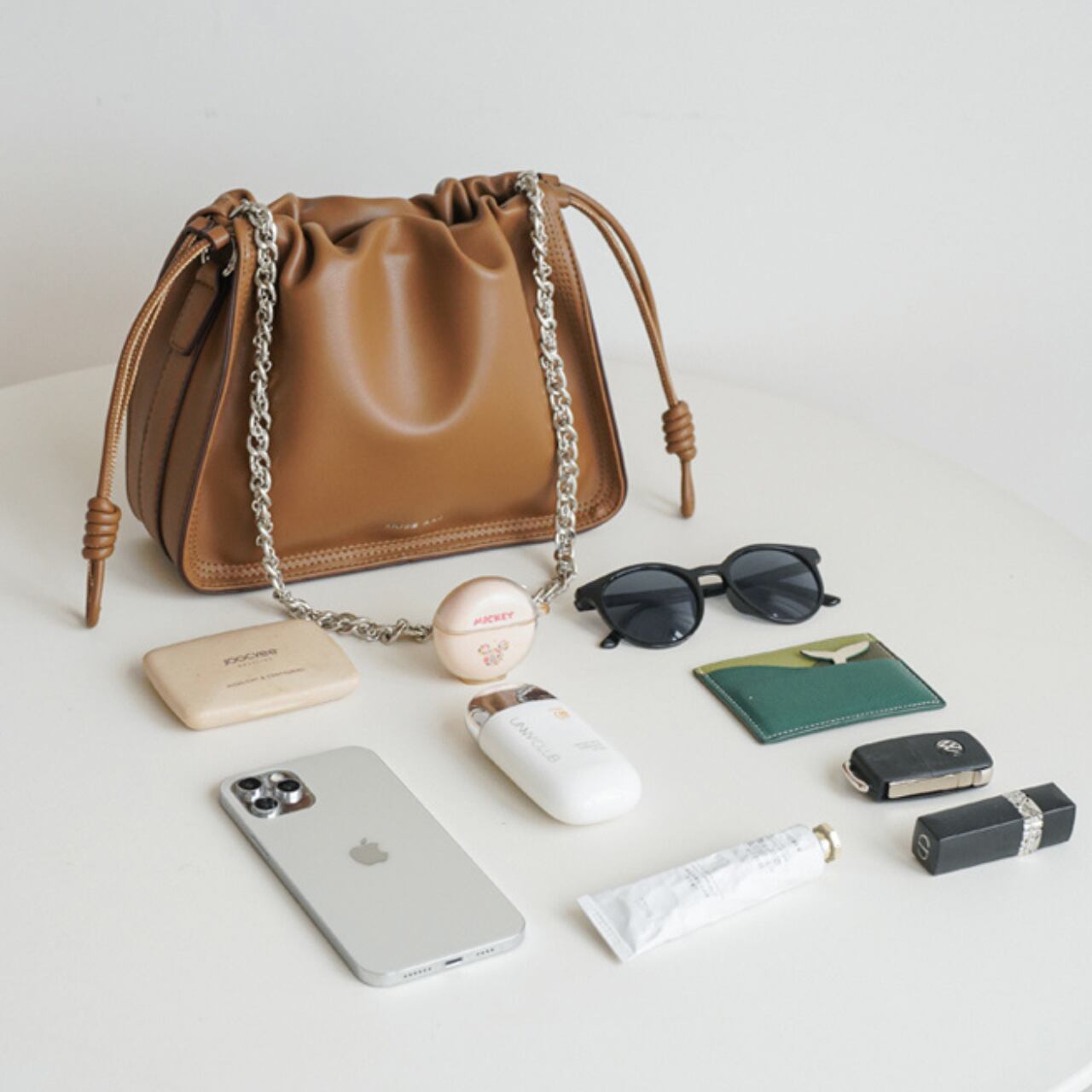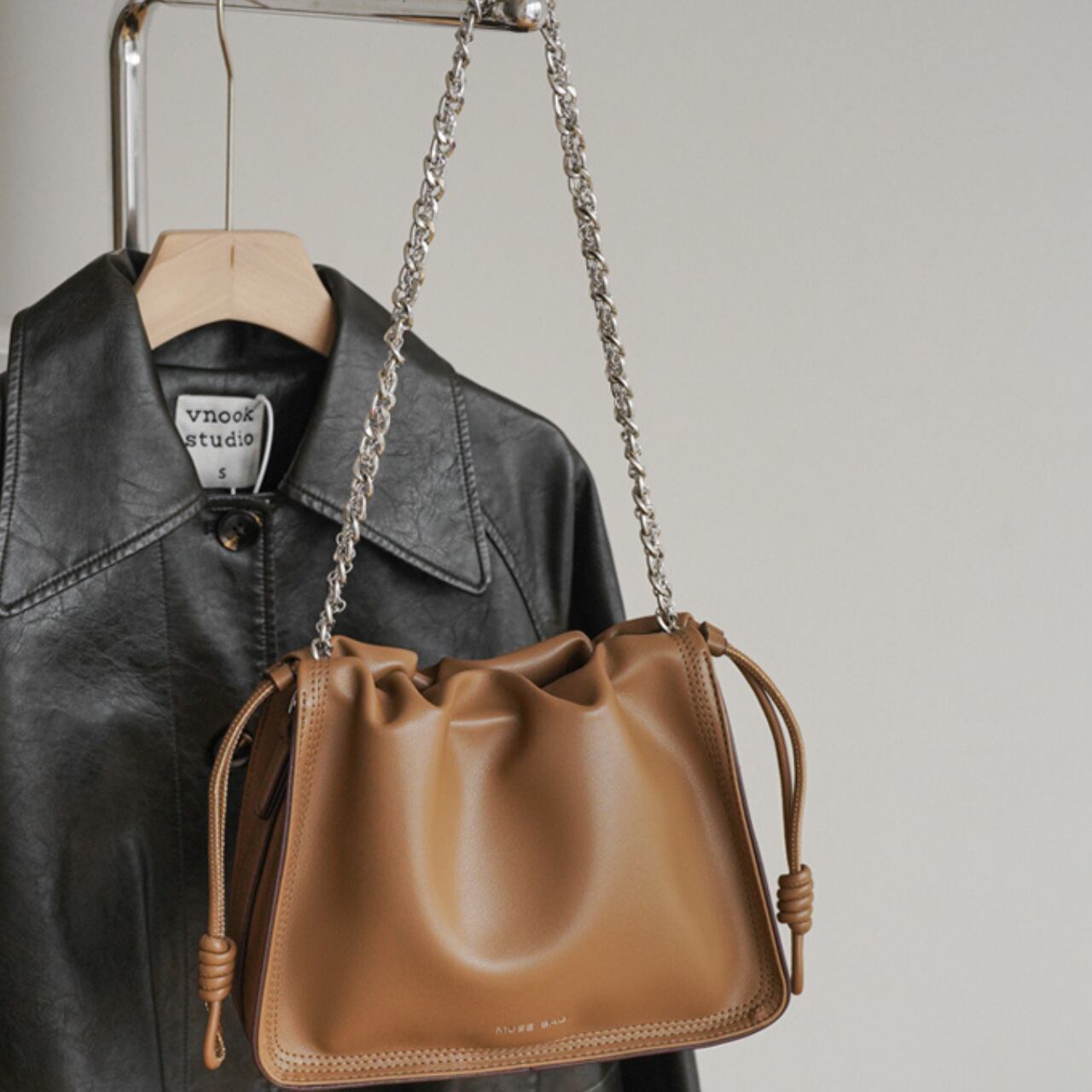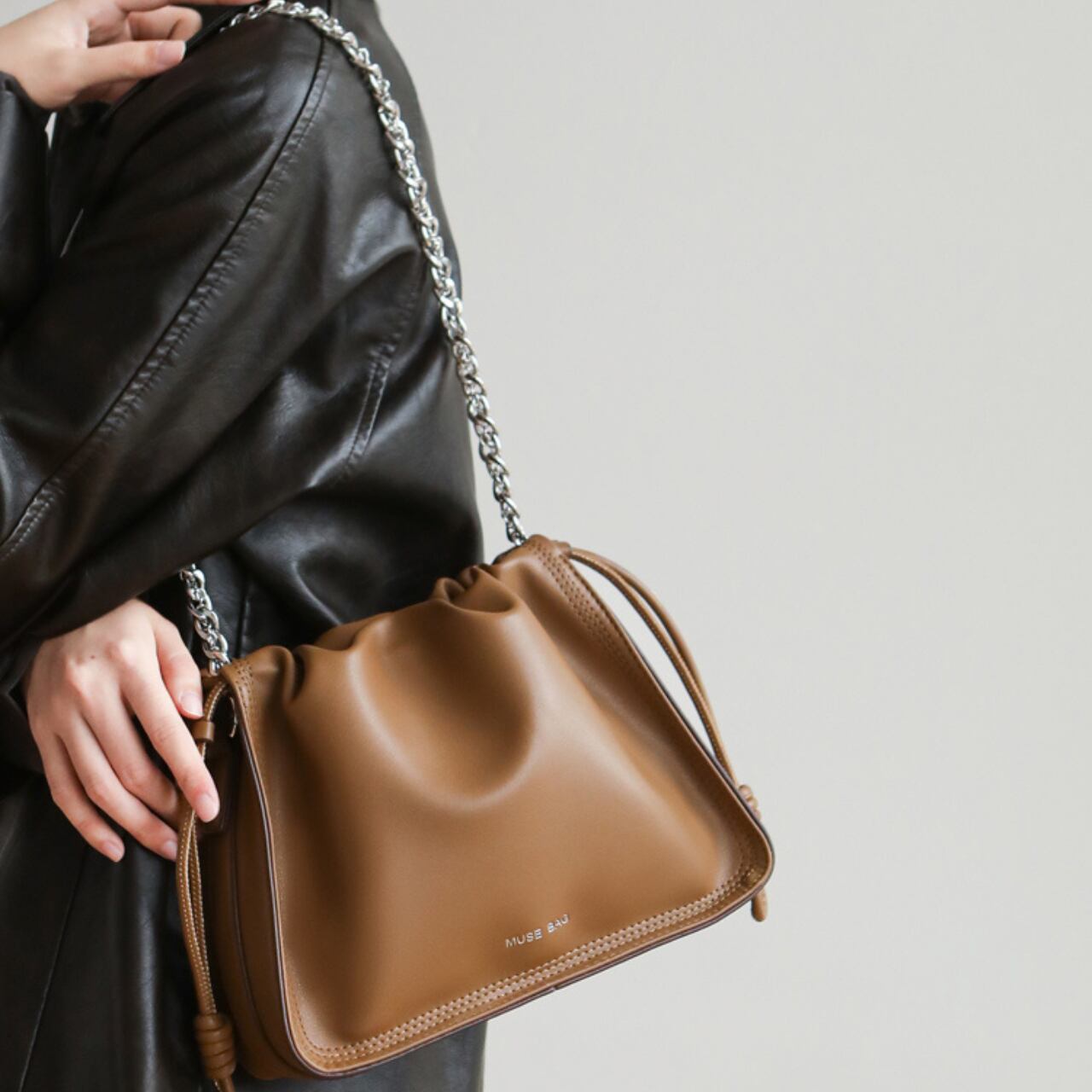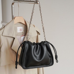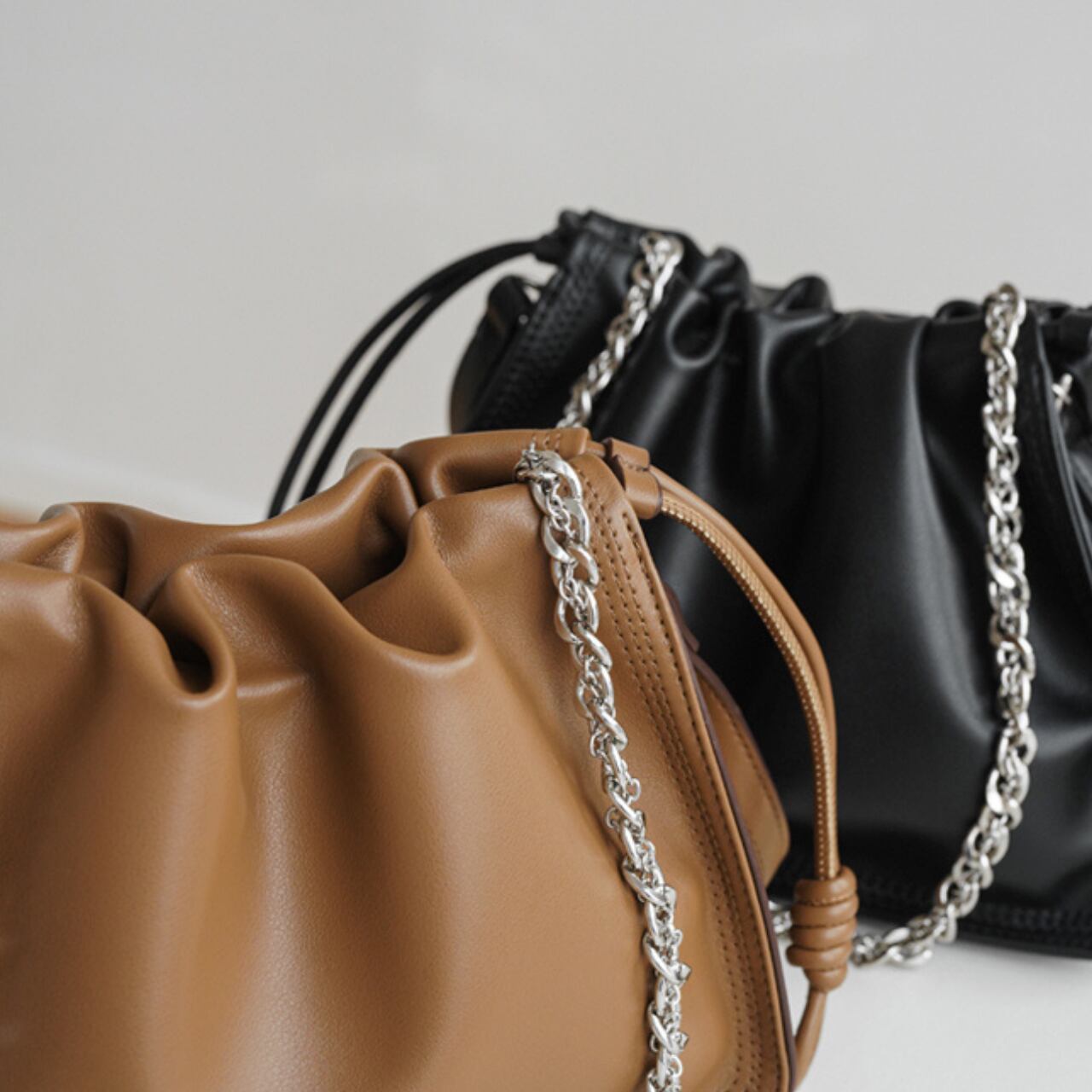 上質なレザーの美しいプリーツデザインと、エレガントなチェーンストラップが印象的なバッグ。
