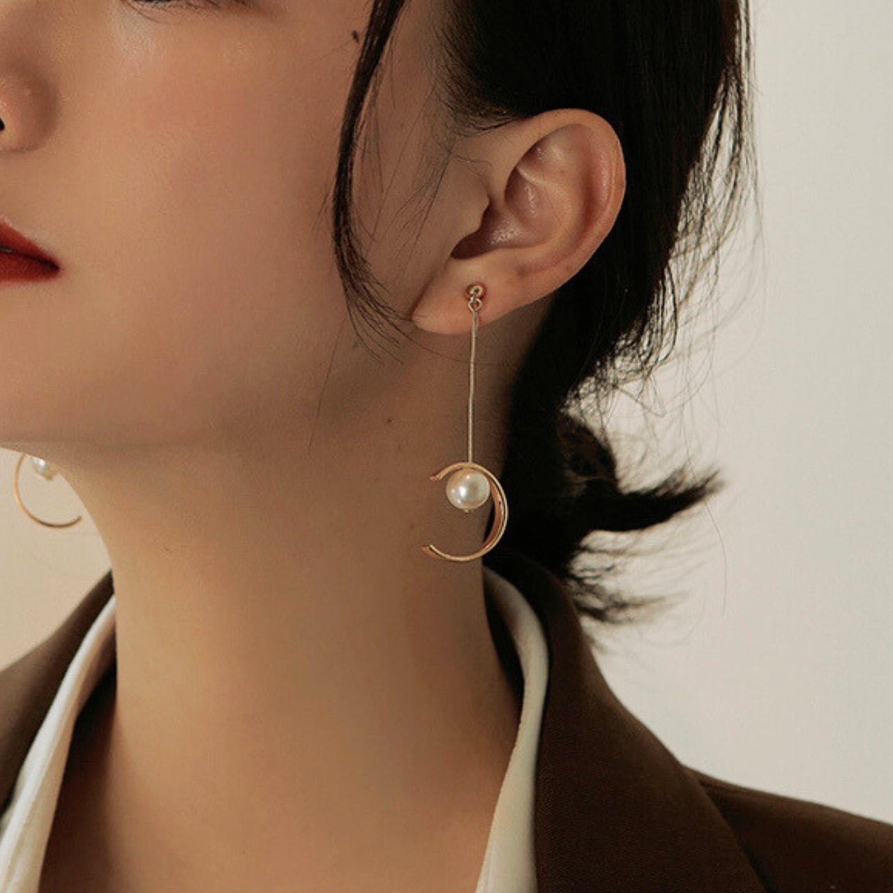 繊細な三日月モチーフに上品なパールを配した、現代女性のためのエレガントアクセサリー。