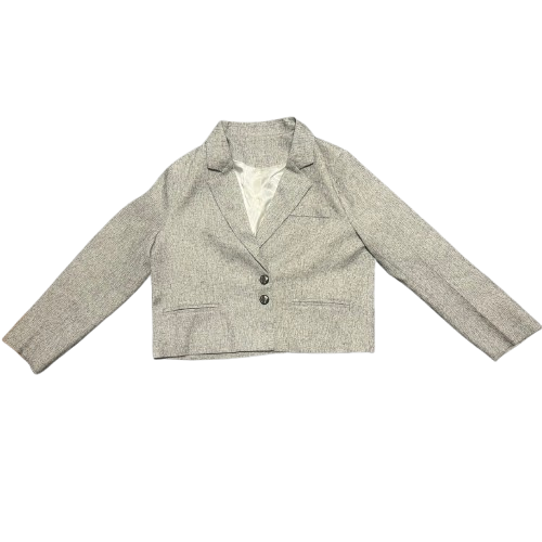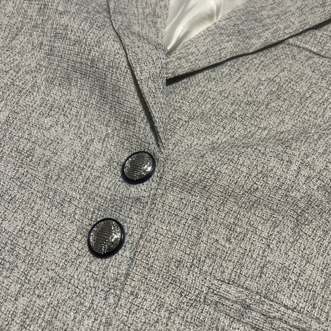 落ち着いたグレーカラーのジャケット&ワイドレッグパンツセット。
