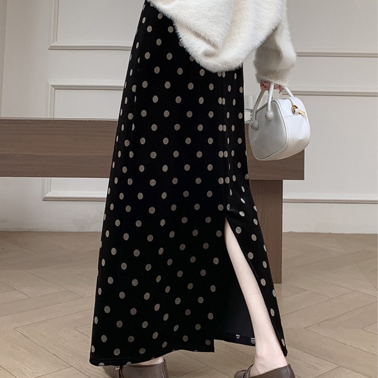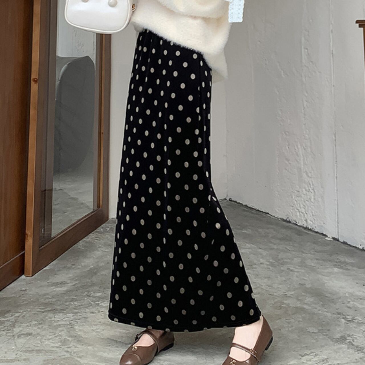 〜クラシックに遊び心をひとさじ〜 クラシックでありながらモダンな存在感を放つ、ドット柄スカート。 上品なベルベット素材にポルカドットを散りばめ、視線を惹きつける華やかさを演出します。 歩くたびに揺れるロング丈が、女性らしい優雅なシルエットを引き立ててくれる一枚。 シーズンを問わず着回せる万能スカートで、コーディネートに品と遊び心をプラスします。 ✔️おすすめのスタイリング ・カラーを統一してモノトーンコーデを楽しむ。 ・タイトなトップスにヒールを合わせてエレガントに仕上げる。 ・オーバーシャツにスニーカーを合わせてカジュアルコーデ。 ■カラー ブラック ■サイズ S 着丈:86cm ウエスト:60-84cm M 着丈:86cm ウエスト:64-88cm L 着丈:87cm ウエスト:68-92cm XL 着丈:88cm ウエスト:72-96cm ※採寸方法により1~3cmの誤差がある場合がございます。 ■商品番号 S1660 ・・━━・・━━・・━━・・━━・・━━・・━━・・ 【お届けについて】 当ショップの商品は海外より取り寄せ・発送となる為、ご入金から2~3週間前後で発送いたします。 【お支払い方法について】 ・クレジットカード決済(VISA/Master/JCB/AMERICAN EXPRESS) ・キャリア決済(docomo/au/Softbank/Y!mobile) ・あと払い Pay ID 決済 【注意事項】 ・商品の在庫切れや生産中止、生産遅延が発生した場合は、注文キャンセルをさせていただく恐れがございます。予めご了承くださいませ。 ・こちらは輸入品となります。日本製品とは検品基準が異なるため、新品未使用品でもごくわずかな汚れや傷がある場合もございます。 ・イメージ違いやサイズ・カラー相違による返品・交換はお断りしております。 ・お手持ちのスマートフォンやパソコンの液晶環境によって、商品のお色味が若干異なる場合がございます。 ・発送時期によりデザイン仕様(素材や細部)の変更がある場合がございます。 ご購入前にこちらをお読みください →https://solemy.base.shop/about ・・━━・・━━・・━━・・━━・・━━・・━━・・