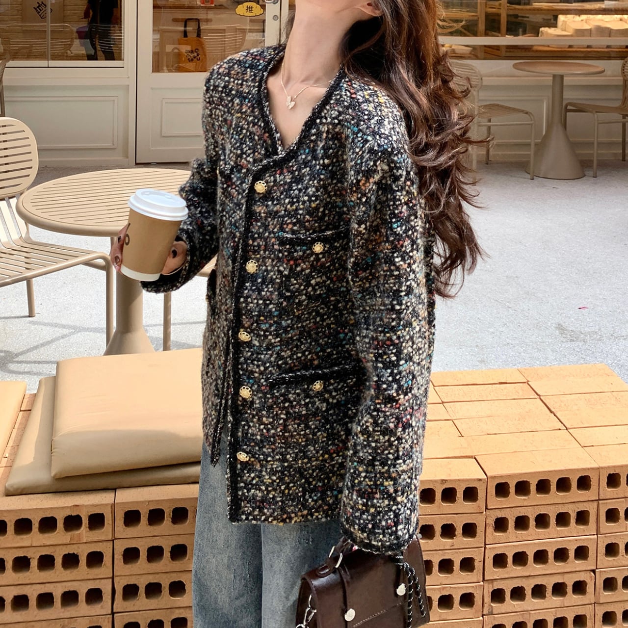 〜洗練されたパリジェンヌスタイル〜 クラシカルなツイード素材に現代的なシルエットを融合させた、タイムレスな一着。 小花柄のような繊細なパターンが織り成す上品な表情は、カジュアルからフォーマルまで幅広いシーンで活躍します。 ゴールドのメタルボタンが高級感を演出し、フリンジトリムがフェミニンな印象をプラス。 程よいゆとりのあるシルエットで着心地も抜群です。 襟元のデザインが小顔効果も期待でき、他のアイテムとの重ね着も自在です。 フロント両サイドにポケット付き。 ✔️おすすめのスタイリング ・ワンピースの上から羽織ってお出かけスタイル。 ・デニムを合わせてエレカジコーデ。 ・シャツやハイネックのニットとのレイヤードスタイルもおすすめです! ■カラー マルチカラー ■サイズ XS 着丈:61cm 肩幅:38cm 胸囲:98cm 袖丈:57cm S 着丈:62cm 肩幅:39cm胸囲:102cm 袖丈:58cm M 着丈:63cm 肩幅:40cm胸囲:106cm 袖丈:59cm L 着丈:64cm 肩幅:41cm胸囲:110cm 袖丈:60cm XL 着丈:65cm肩幅:42cm 胸囲:114cm 袖丈:61cm ※採寸方法により、1〜3cmの誤差がある場合がございます。 ■素材 ウール35%、混紡65% ■モデル 身長:163cm 体重:45kg Mサイズ着用 ■商品番号 S1668 ・・━━・・━━・・━━・・━━・・━━・・━━・・ 【お届けについて】 当ショップの商品は海外より取り寄せ・発送となりますので、ご入金から2〜3週間前後での発送を予定しております。 【お支払い方法について】 ・クレジットカード決済(VISA/Master/JCB/AMERICAN EXPRESS) ・キャリア決済(docomo/au/Softbank/Y!mobile) ・あと払い Pay ID決済 【注意事項】 ・商品の在庫切れや生産中止、生産遅延が発生する場合がありますので、ご了承ください。 ・こちらは輸入品であり、日本製品とは検品基準が異なることがあります。新品未使用品でも、わずかな汚れや傷が見受けられることがあります。 ・イメージ違いやサイズ・カラー相違による返品・交換はお断りさせていただきます。 ・お手持ちのスマートフォンやパソコンの環境によって、商品のお色味が異なる場合があります。 ・発送時期によってデザインや素材、細部が変更されることがございます。 ご購入前にこちらをお読みください →https://solemy.base.shop/about ・・━━・・━━・・━━・・━━・・━━・・━━・・