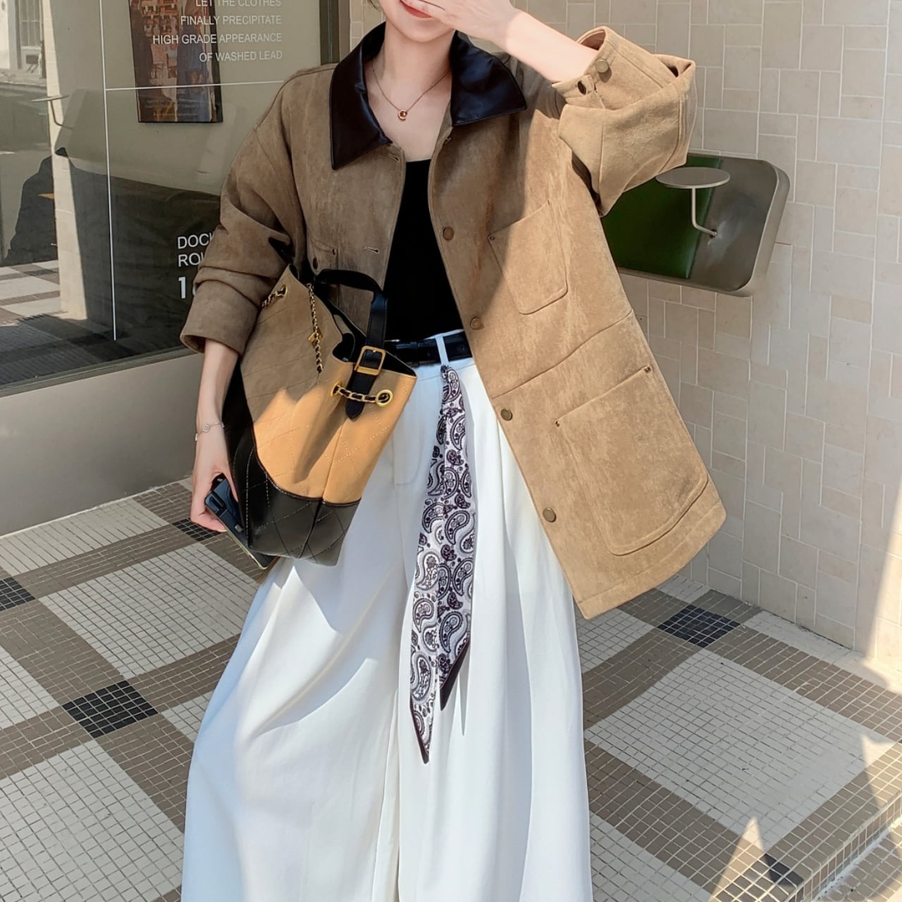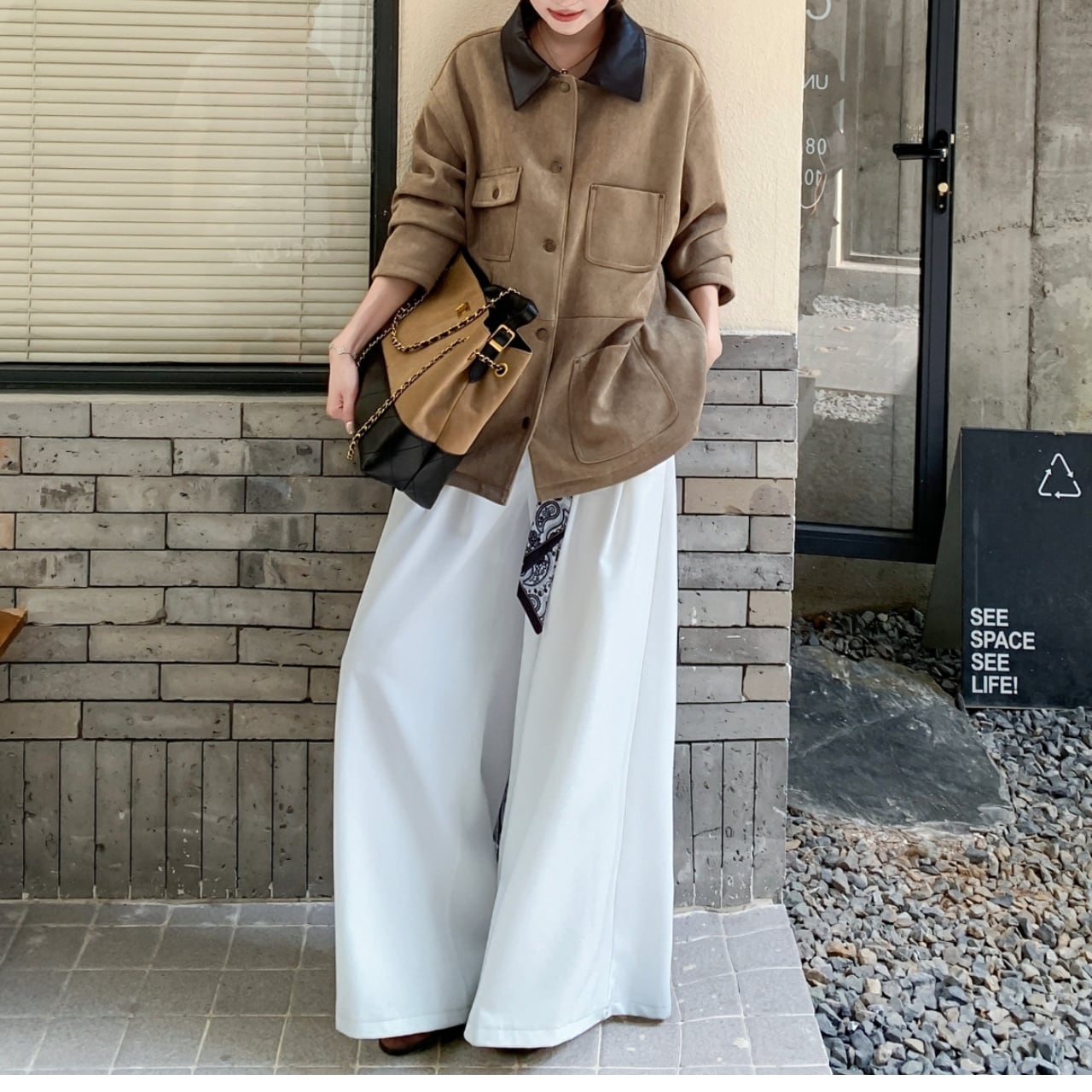 〜洗練されたコントラスト〜 キャメルボディに、バイカラーの襟が映える、計算されたデザイン。 異なる質感と色が織りなすコントラストが、シンプルながらも忘れられない印象を残します。 ゆったりとしたオーバーサイズシルエットは、肩まわりや二の腕を自然にカバーしながら、リラックスした大人の余裕を演出。 身幅にゆとりがあるから、厚手のニットやパーカーの上からも楽に羽織れる実用性の高さも魅力です。 袖を少しロールアップして手首を見せれば、さらに抜け感がプラスされ、こなれた印象に。体型を選ばず誰でも美しく着こなせる、計算されたシルエットです。 ✔️おすすめのスタイリング ・デニムと合わせて、シンプルでありながらおしゃれなカジュアルスタイルに。 ・ワンピースと組み合わせて、エレカジコーデを楽しむ。 ・タートルネックやシャツをインナーに重ねて、レイヤードスタイルに挑戦するのもおすすめ。 ■カラー ブラウン ■サイズ XS 着丈:67cm 胸囲:116cm 肩幅:52cm 袖丈:55cm S 着丈:68cm 胸囲:120cm 肩幅:53cm 袖丈:56cm M 着丈:69cm 胸囲:124cm 肩幅:54cm 袖丈:57cm L 着丈:70cm 胸囲:128cm 肩幅:55cm 袖丈:58cm XL 着丈:71cm 胸囲:132cm 肩幅:56cm 袖丈:59cm ※採寸方法により、1〜3cmの誤差がある場合がございます。 ■モデル 身長:165cm 体重:46kg Mサイズ着用 ■商品番号 S1675 ・・━━・・━━・・━━・・━━・・━━・・━━・・ 【お届けについて】 当ショップの商品は海外より取り寄せ・発送となりますので、ご入金から2〜3週間前後での発送を予定しております。 【お支払い方法について】 ・クレジットカード決済(VISA/Master/JCB/AMERICAN EXPRESS) ・キャリア決済(docomo/au/Softbank/Y!mobile) ・あと払い Pay ID決済 【注意事項】 ・商品の在庫切れや生産中止、生産遅延が発生する場合がありますので、ご了承ください。 ・こちらは輸入品であり、日本製品とは検品基準が異なることがあります。新品未使用品でも、わずかな汚れや傷が見受けられることがあります。 ・イメージ違いやサイズ・カラー相違による返品・交換はお断りさせていただきます。 ・お手持ちのスマートフォンやパソコンの環境によって、商品のお色味が異なる場合があります。 ・発送時期によってデザインや素材、細部が変更されることがございます。 ご購入前にこちらをお読みください →https://solemy.base.shop/about ・・━━・・━━・・━━・・━━・・━━・・━━・・