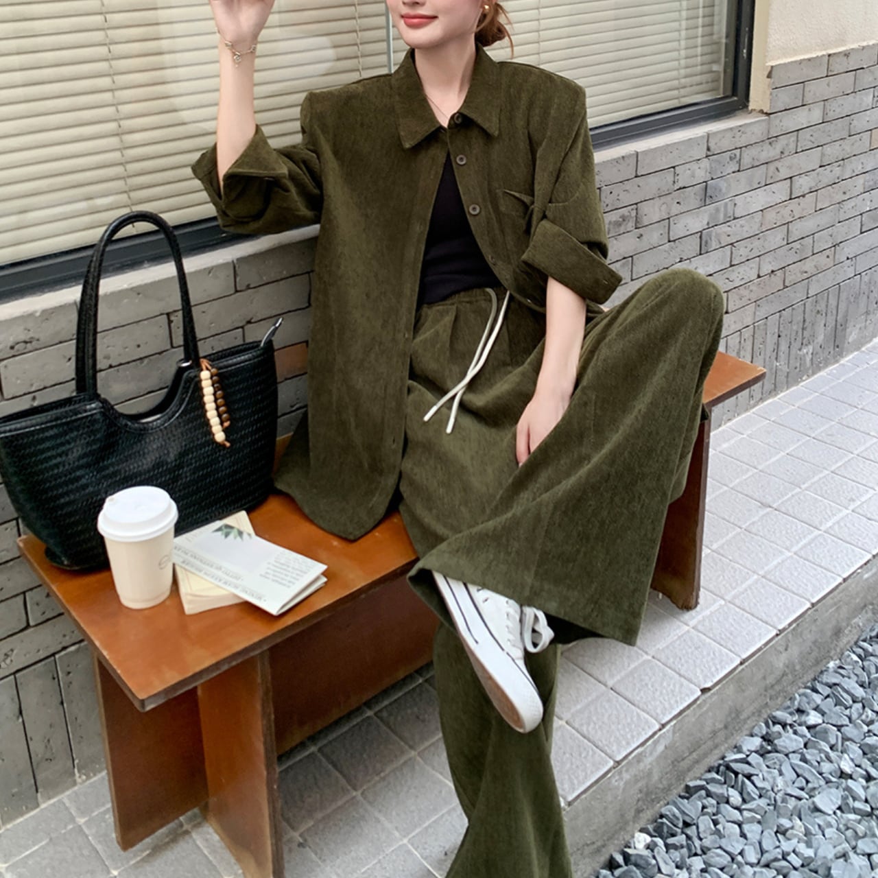 都会的な感性と程よいリラックス感が融合した、こだわりのカーキセットアップ。