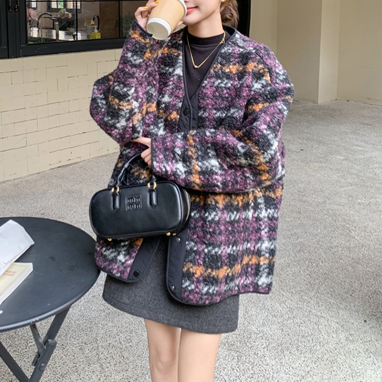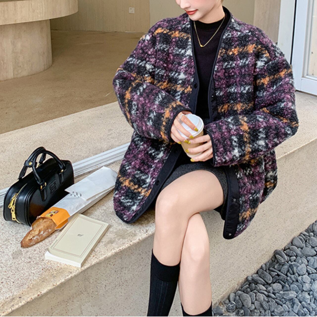 〜ノーカラーに宿る、柔らかな品格〜 パープルを基調としたマルチカラーチェックが華やぐ、ツイード調ノーカラージャケット。 ピンク、オレンジ、グレー、ブラックが絶妙に混ざり合い、まるでアート作品のような表情豊かな一枚。 光の当たり方によって色の見え方が変わり、見る角度によって異なる表情を楽しめます。派手すぎず、地味すぎない、大人が着こなせる絶妙なバランスです。 程よくゆとりのあるオーバーサイズシルエットが、リラックス感とこなれ感を演出。肩の力を抜いた自然体の着こなしが叶います。 ✔️おすすめのスタイリング ・タートルネックやハイネックのインナーと合わせることで、シーズンごとの長めのレイヤードスタイルを楽しめます。 ・デニムやテーパードパンツと組み合わせれば、カジュアルながらもおしゃれな印象に。 ・エレガントなスカートやドレスに羽織ることで、特別なシーンにもふさわしいコーディネートになります。 ■カラー マルチカラー ■サイズ XS 着丈:67cm 胸囲:116cm 肩幅:56cm 袖丈:49cm S 着丈:68cm 胸囲:120cm 肩幅:57cm 袖丈:50cm M 着丈:69cm 胸囲:124cm 肩幅:58cm 袖丈:51cm L 着丈:70cm 胸囲:128cm 肩幅:59cm 袖丈:52cm XL 着丈:71cm 胸囲:132cm 肩幅:60cm 袖丈:53cm ■モデル 身長:165cm 体重:46kg Mサイズ着用 ■商品番号 S1697 ・・━━・・━━・・━━・・━━・・━━・・━━・・ 【お届けについて】 当ショップの商品は海外より取り寄せ・発送となりますので、ご入金から2〜3週間前後での発送を予定しております。 【お支払い方法について】 ・クレジットカード決済(VISA/Master/JCB/AMERICAN EXPRESS) ・キャリア決済(docomo/au/Softbank/Y!mobile) ・あと払い Pay ID決済 【注意事項】 ・商品の在庫切れや生産中止、生産遅延が発生する場合がありますので、ご了承ください。 ・こちらは輸入品であり、日本製品とは検品基準が異なることがあります。新品未使用品でも、わずかな汚れや傷が見受けられることがあります。 ・イメージ違いやサイズ・カラー相違による返品・交換はお断りさせていただきます。 ・お手持ちのスマートフォンやパソコンの環境によって、商品のお色味が異なる場合があります。 ・発送時期によってデザインや素材、細部が変更されることがございます。 ご購入前にこちらをお読みください →https://solemy.base.shop/about ・・━━・・━━・・━━・・━━・・━━・・━━・・