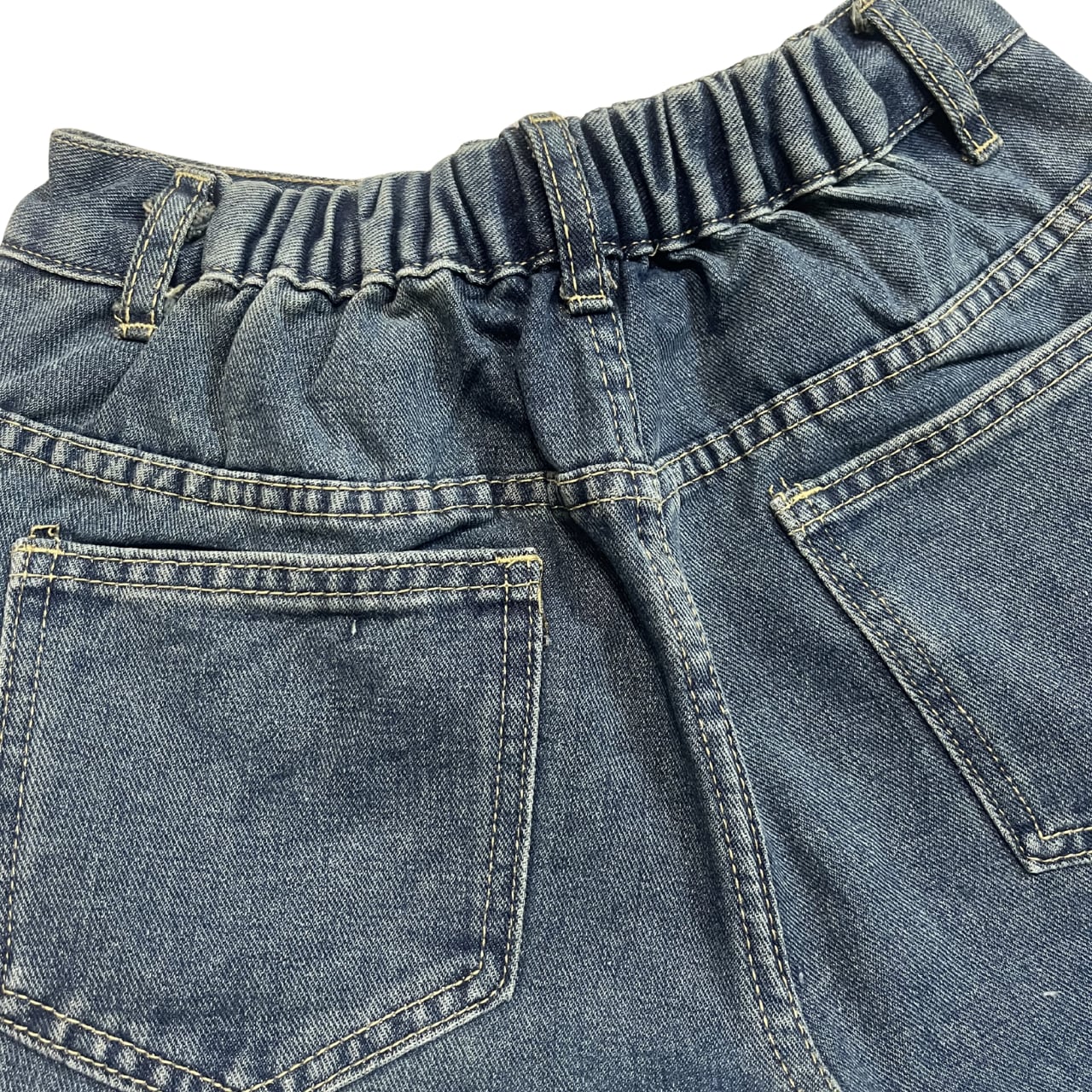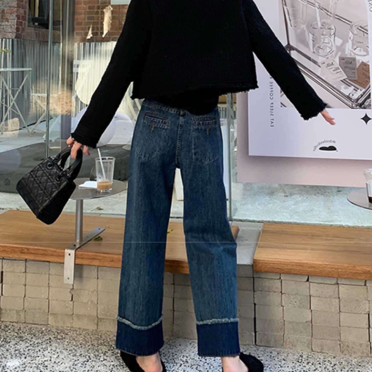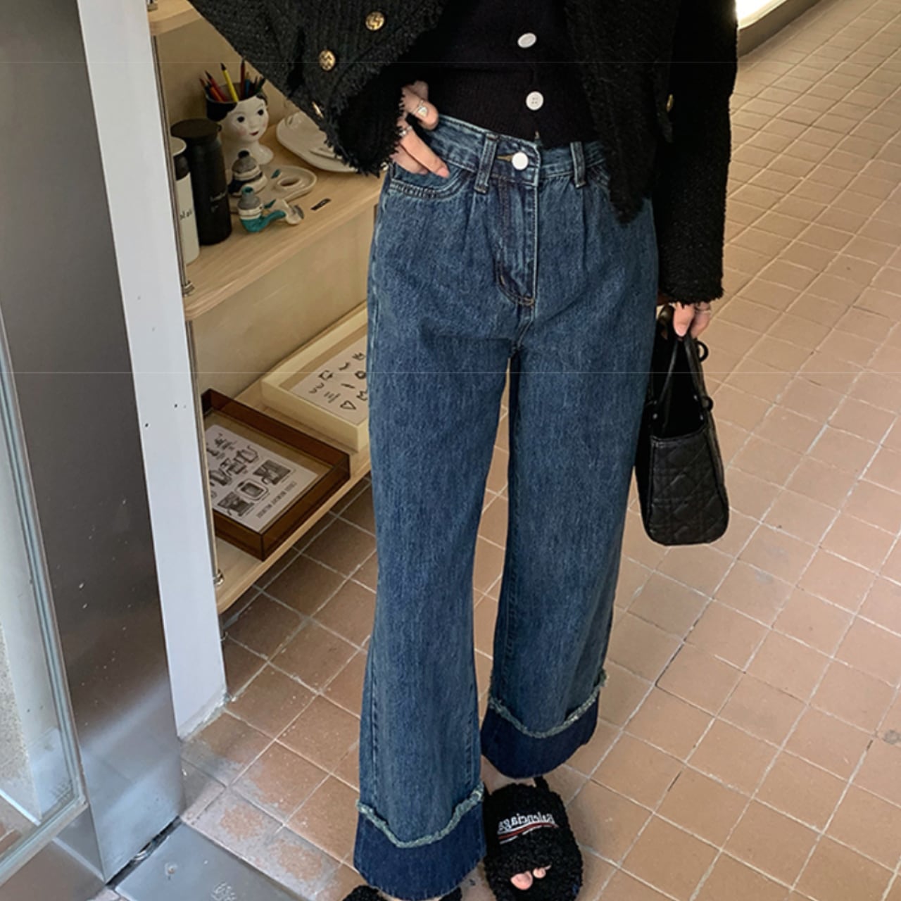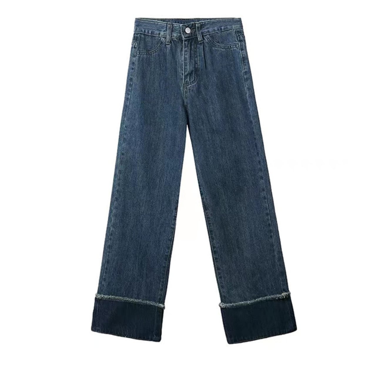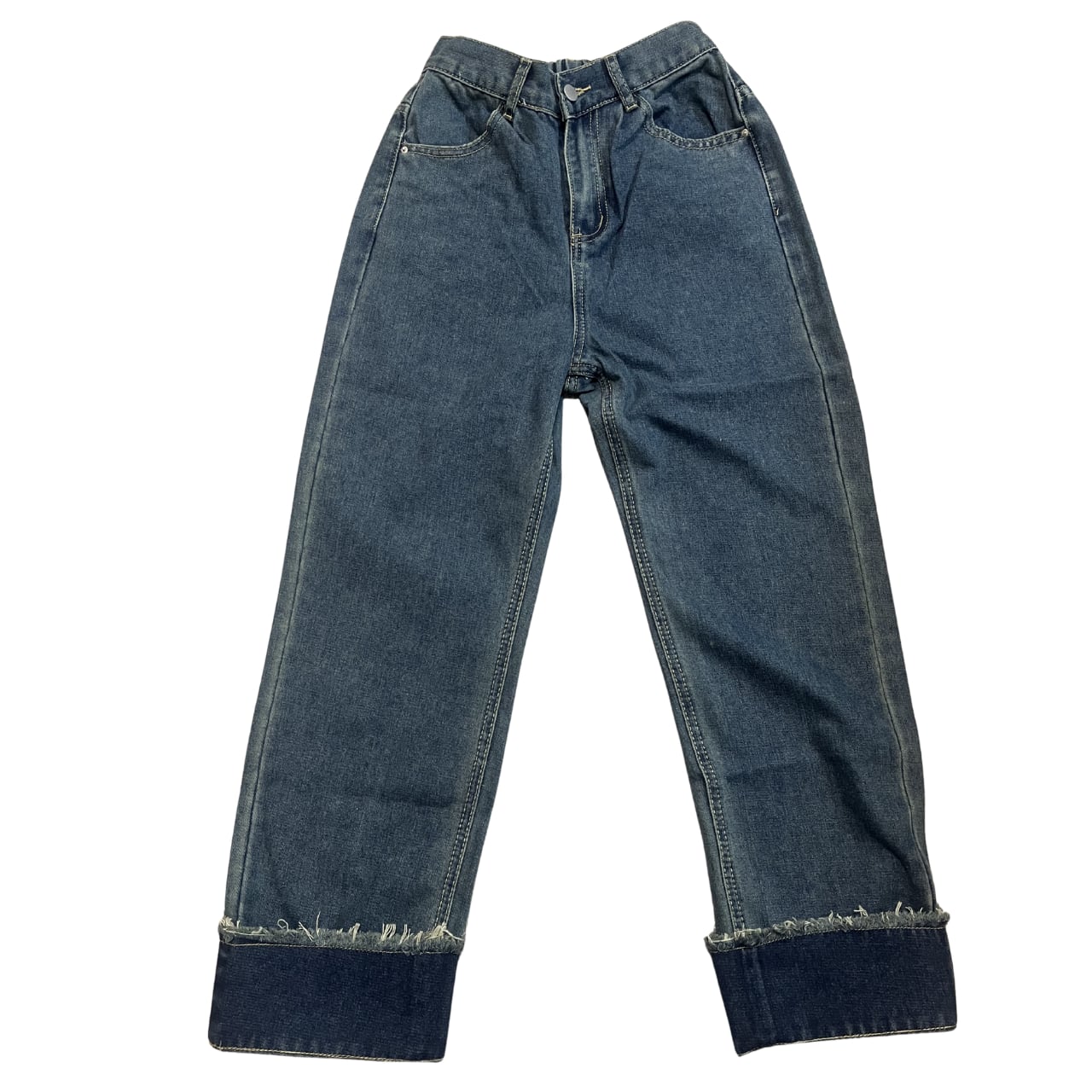 ヴィンテージ加工を施したデニム生地に、大胆なロールアップデザインをプラス。