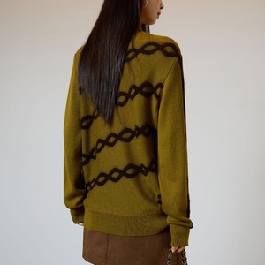 マスタードイエローのボディに、ブラウンのツイストロープ柄が織り成すコントラストは、まるでヴィンテージのタペストリーを思わせる芸術性。