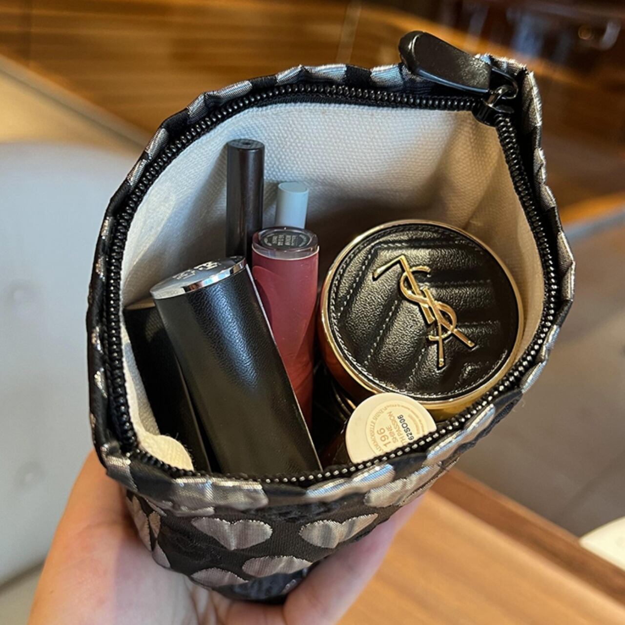 〜小さなハートに、大きなときめきを〜 ハートがぎっしり並んだ、愛らしいジャガード織りポーチ。 シックな配色で大人っぽく仕上げた、持つたびに気分が上がる実用アイテムです。 ぷっくりと浮き上がるハートモチーフは、刺繍とは違う、織り込まれた柄ならではの上質な質感と耐久性が魅力です。 小さめサイズはコスメやアクセサリー入れに、大きめサイズはメイク道具やガジェット類の収納に。用途に合わせて使い分けられます。 ■カラー ・ブラック ・ピンク ■サイズ 大ポーチ: 縦19cmx横26cm 小ポーチ: 縦14cmx横16cm ■商品番号 S1712 ・・━━・・━━・・━━・・━━・・━━・・━━・・ 【お届けについて】 当ショップの商品は海外より取り寄せ・発送となりますので、ご入金から2〜3週間前後での発送を予定しております。 【お支払い方法について】 ・クレジットカード決済(VISA/Master/JCB/AMERICAN EXPRESS) ・キャリア決済(docomo/au/Softbank/Y!mobile) ・あと払い Pay ID決済 【注意事項】 ・商品の在庫切れや生産中止、生産遅延が発生する場合がありますので、ご了承ください。 ・こちらは輸入品であり、日本製品とは検品基準が異なることがあります。新品未使用品でも、わずかな汚れや傷が見受けられることがあります。 ・イメージ違いやサイズ・カラー相違による返品・交換はお断りさせていただきます。 ・お手持ちのスマートフォンやパソコンの環境によって、商品のお色味が異なる場合があります。 ・発送時期によってデザインや素材、細部が変更されることがございます。 ご購入前にこちらをお読みください →https://solemy.base.shop/about ・・━━・・━━・・━━・・━━・・━━・・━━・・