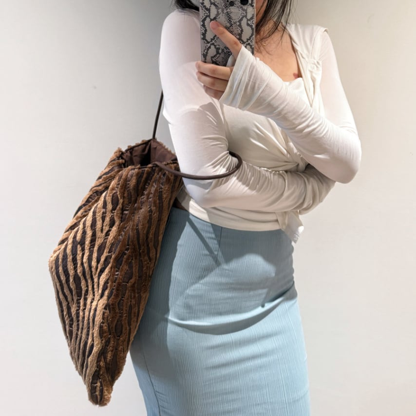 立体的なゼブラ柄の質感が印象的なショルダーバッグ。