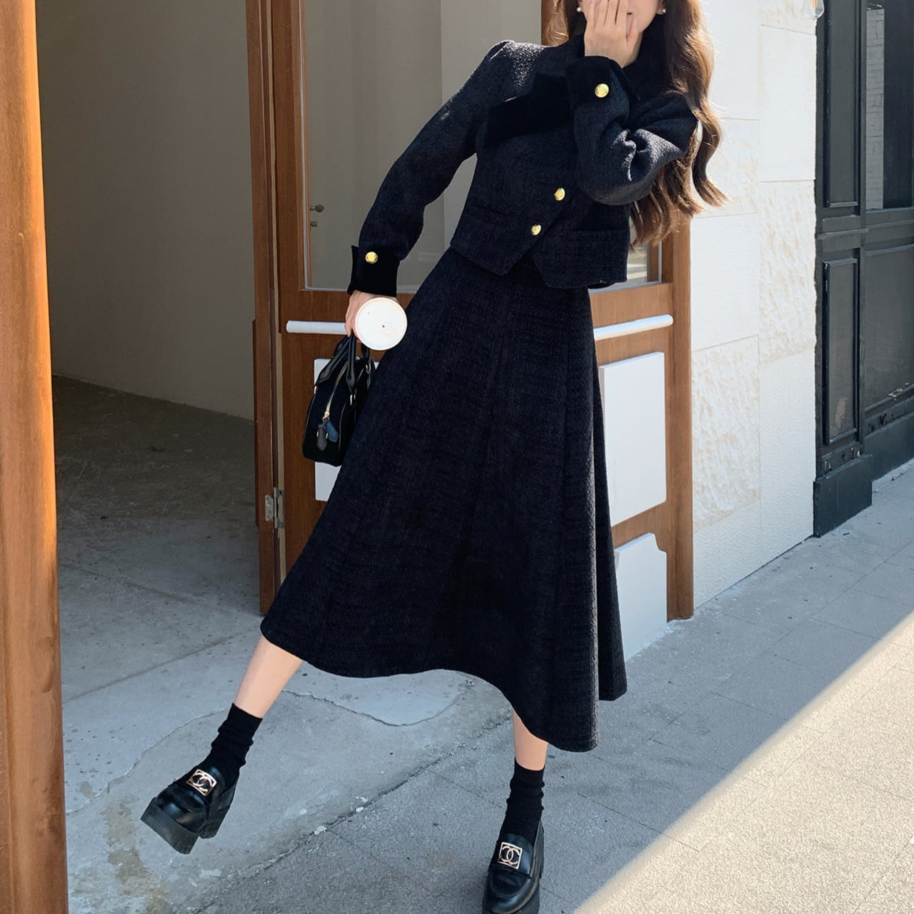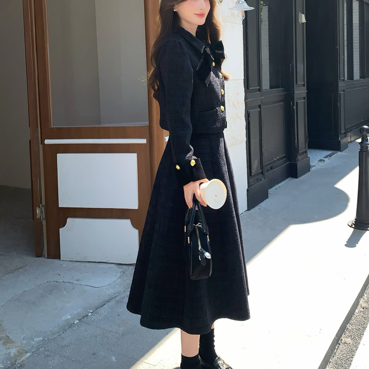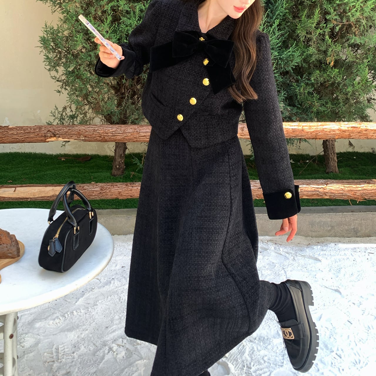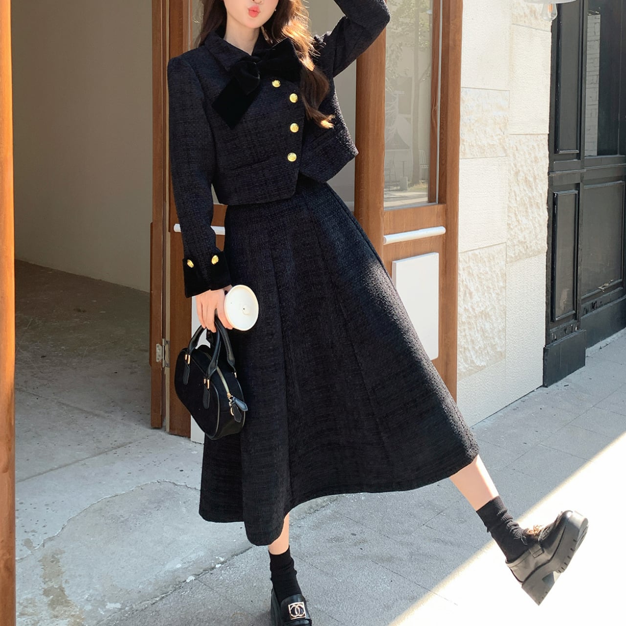 Black tweed jacket & skirt set S1752