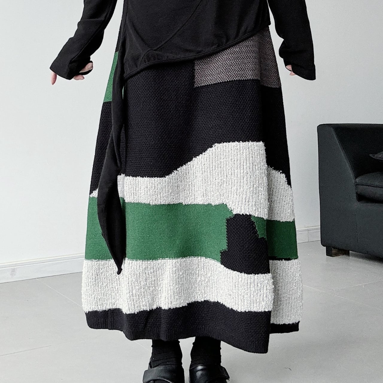 Color block knit long skirt S1753