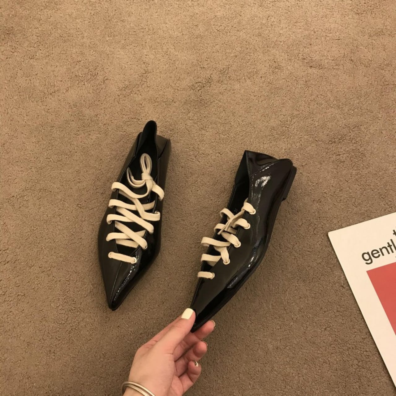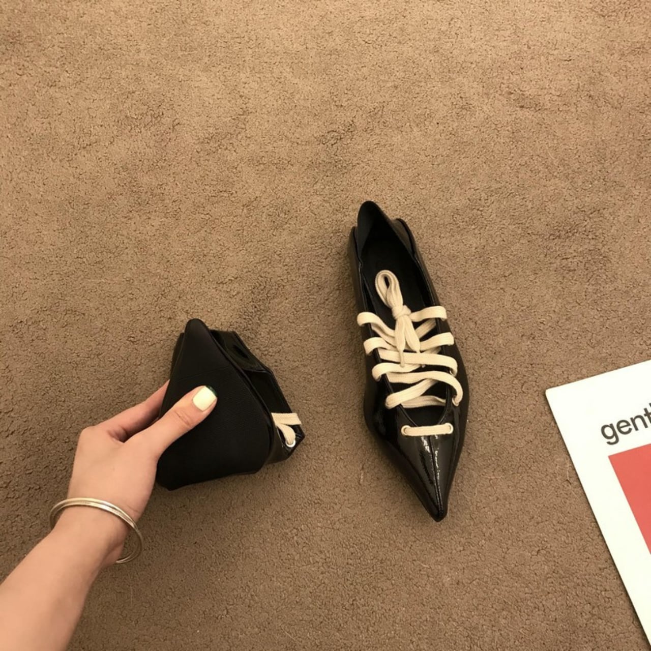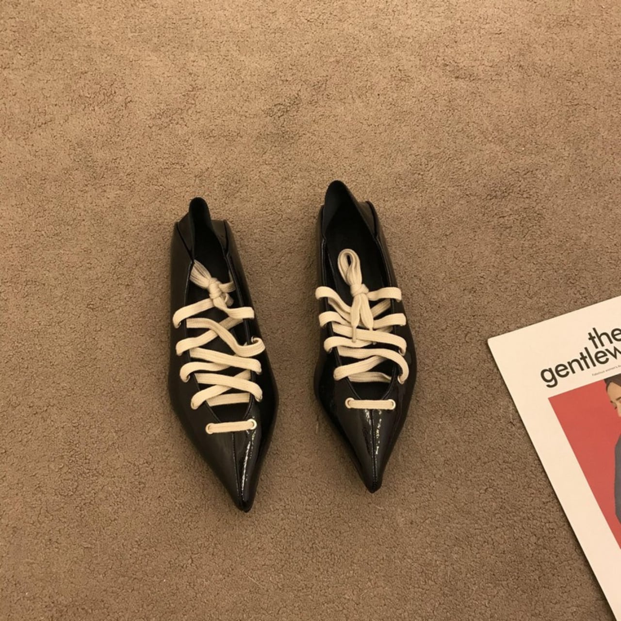 〜クラシックとモードの交差〜 シャープなポインテッドトゥと遊び心あるレースアップデザインが融合した、唯一無二のパンプス。 クラシックなレースアップシューズの要素を大胆にパンプスへと昇華させた、モードな感性が光る一足です。 艶やかなブラックレザーが醸し出す品格と、アイボリーのレースが生み出すコントラストが印象的。 フラットなシルエットながら、鋭角的なポインテッドトゥが足元を驚くほどシャープに演出します。 抜け感とこなれた雰囲気を纏いながら、個性をプラスするアイテムです。 ✔️おすすめのスタイリング ・シンプルなワンピースと合わせて、洗練されたスタイルを楽しんで。 ・デニムやテーパードパンツとのコーディネートで、カジュアルな中に女性らしさをプラス。 ・モノトーンコーデのアクセントに。 ■カラー ブラック ◼️サイズ 35 22.5cm 36 23cm 37 23.5cm 38 24cm 39 24.5cm ヒールの高さ:約1cm ■商品番号 S1761 ・・━━・・━━・・━━・・━━・・━━・・━━・・ 【お届けについて】 当ショップの商品は海外より取り寄せ・発送となりますので、ご入金から2〜3週間前後での発送を予定しております。 【お支払い方法について】 ・クレジットカード決済(VISA/Master/JCB/AMERICAN EXPRESS) ・キャリア決済(docomo/au/Softbank/Y!mobile) ・あと払い Pay ID決済 【注意事項】 ・商品の在庫切れや生産中止、生産遅延が発生する場合がありますので、ご了承ください。 ・こちらは輸入品であり、日本製品とは検品基準が異なることがあります。新品未使用品でも、わずかな汚れや傷が見受けられることがあります。 ・イメージ違いやサイズ・カラー相違による返品・交換はお断りさせていただきます。 ・お手持ちのスマートフォンやパソコンの環境によって、商品のお色味が異なる場合があります。 ・発送時期によってデザインや素材、細部が変更されることがございます。 ご購入前にこちらをお読みください →https://solemy.base.shop/about ・・━━・・━━・・━━・・━━・・━━・・━━・・
