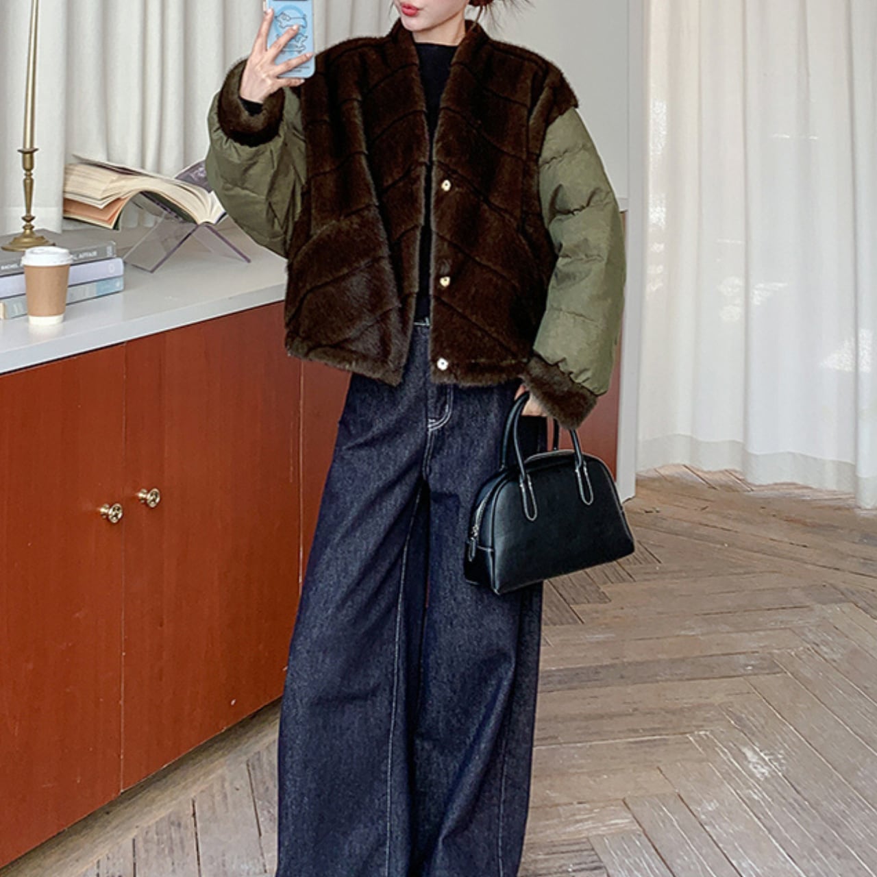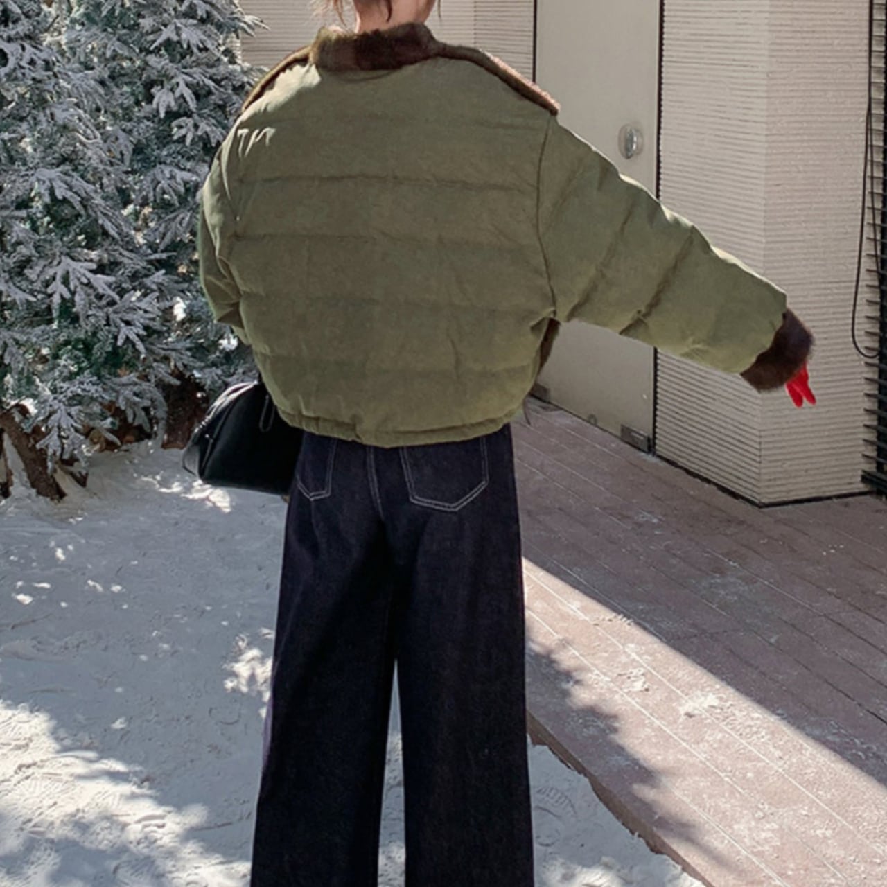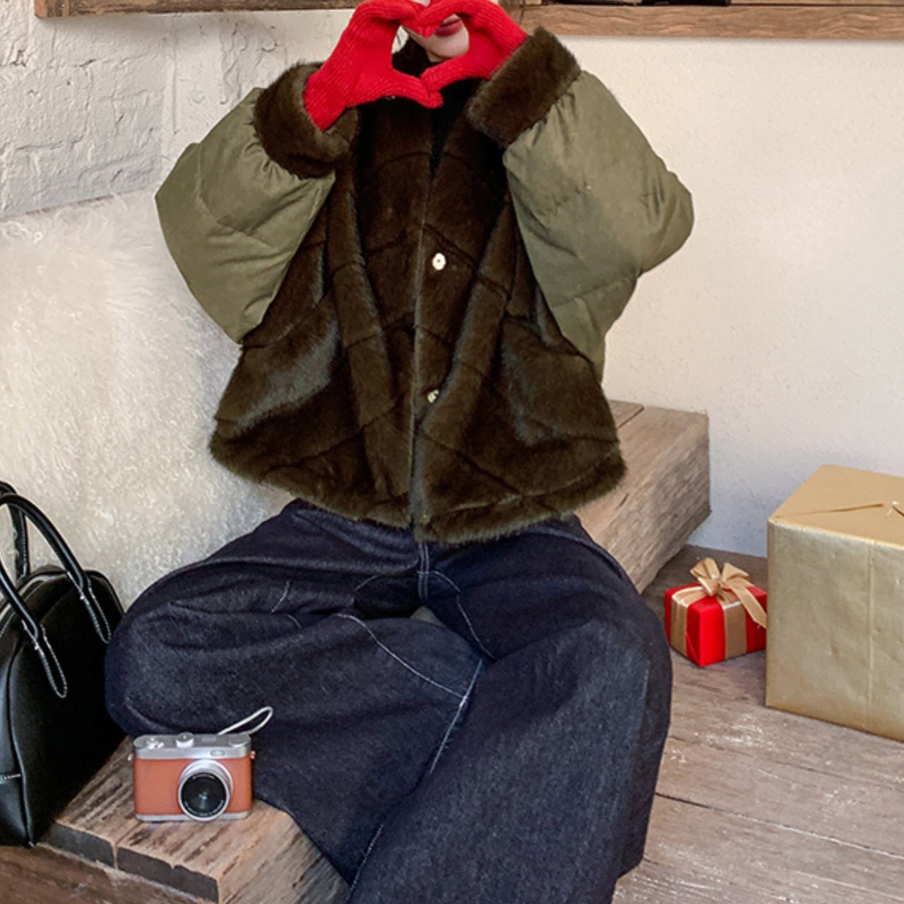 〜一着で二つの表情を叶える〜 トレンドのオーバーサイズシルエットに、温かみのあるファー素材とミリタリーテイストを融合したジャケット。 フロントはリッチなブラウンファー、袖と背面はマットなカーキグリーンの切替デザインが、一着でスタイリングに深みと立体感をプラスします。 フロントはボタン仕様で着脱も簡単。 ファー素材で顔周りを華やかに演出し、小顔効果も期待できます。 ポケットは両サイドに配置され、実用性も兼ね備えたデザイン。 細部まで丁寧に作り込まれた一着です。 ✔️おすすめのスタイリング ・デニムやスキニーパンツと合わせて、カジュアルな日常スタイル。 ・ワンピースの上に羽織って、エレカジコーデもオススメ。 ・ブーツと合わせて、トレンド感漂う冬のアウタースタイルを演出! ■カラー グリーン×ブラウン ◼️サイズ XS 着丈:53cm 胸囲:126cm 肩幅:58cm 袖丈:50cm S 着丈:54cm 胸囲:130cm 肩幅:59cm 袖丈:51cm M 着丈:55cm 胸囲:134cm 肩幅:60cm 袖丈:52cm L 着丈:56cm 胸囲:138cm 肩幅:61cm 袖丈:53cm XL 着丈:57cm 胸囲:142cm 肩幅:62cm 袖丈:54cm ※採寸方法により1〜3cmの誤差がある場合がございます。 ■モデル 身長:165cm 体重:46kg Mサイズ着用 ■商品番号 S1770 ・・━━・・━━・・━━・・━━・・━━・・━━・・ 【お届けについて】 当ショップの商品は海外より取り寄せ・発送となりますので、ご入金から2〜3週間前後での発送を予定しております。 【お支払い方法について】 ・クレジットカード決済(VISA/Master/JCB/AMERICAN EXPRESS) ・キャリア決済(docomo/au/Softbank/Y!mobile) ・あと払い Pay ID決済 【注意事項】 ・商品の在庫切れや生産中止、生産遅延が発生する場合がありますので、ご了承ください。 ・こちらは輸入品であり、日本製品とは検品基準が異なることがあります。新品未使用品でも、わずかな汚れや傷が見受けられることがあります。 ・イメージ違いやサイズ・カラー相違による返品・交換はお断りさせていただきます。 ・お手持ちのスマートフォンやパソコンの環境によって、商品のお色味が異なる場合があります。 ・発送時期によってデザインや素材、細部が変更されることがございます。 ご購入前にこちらをお読みください →https://solemy.base.shop/about ・・━━・・━━・・━━・・━━・・━━・・━━・・