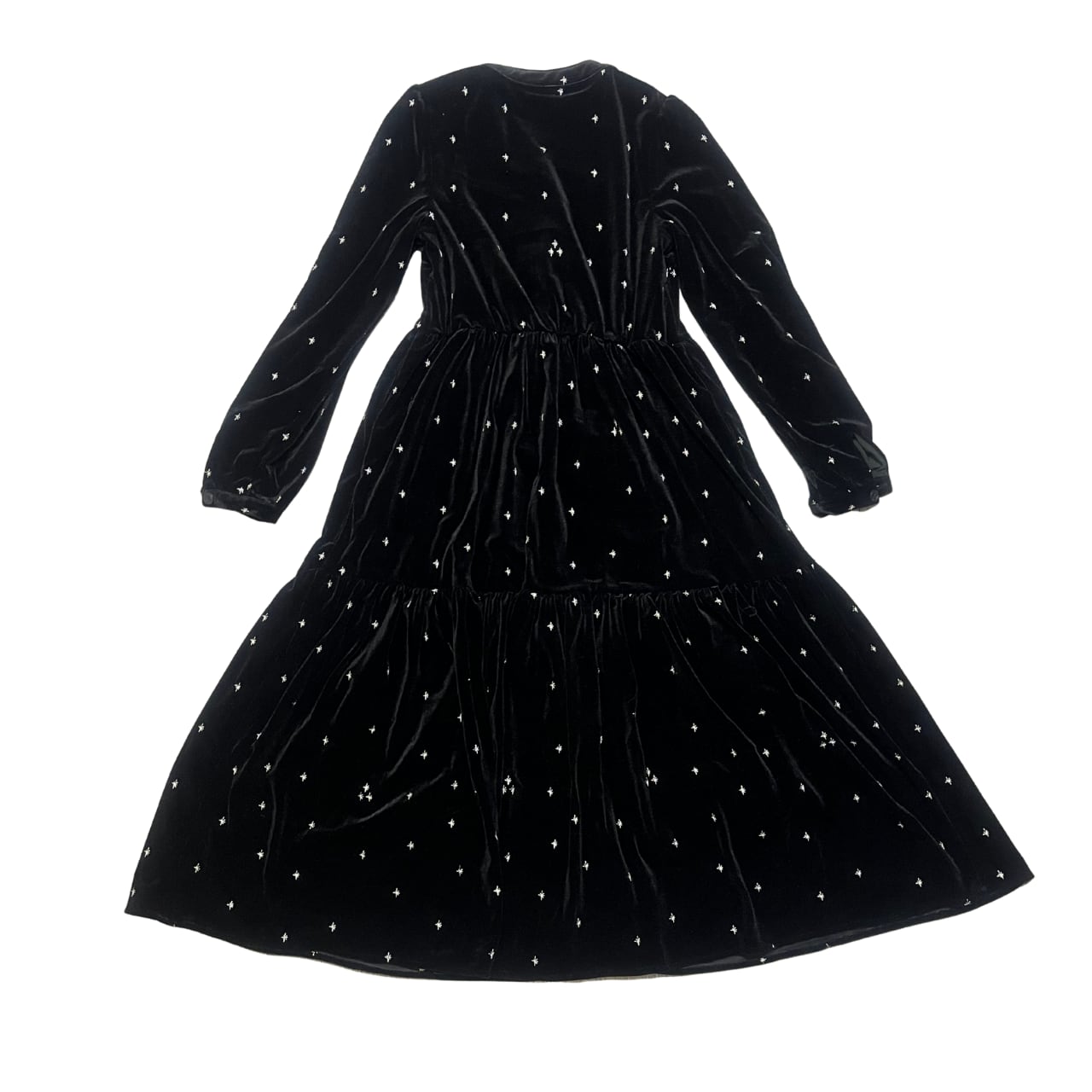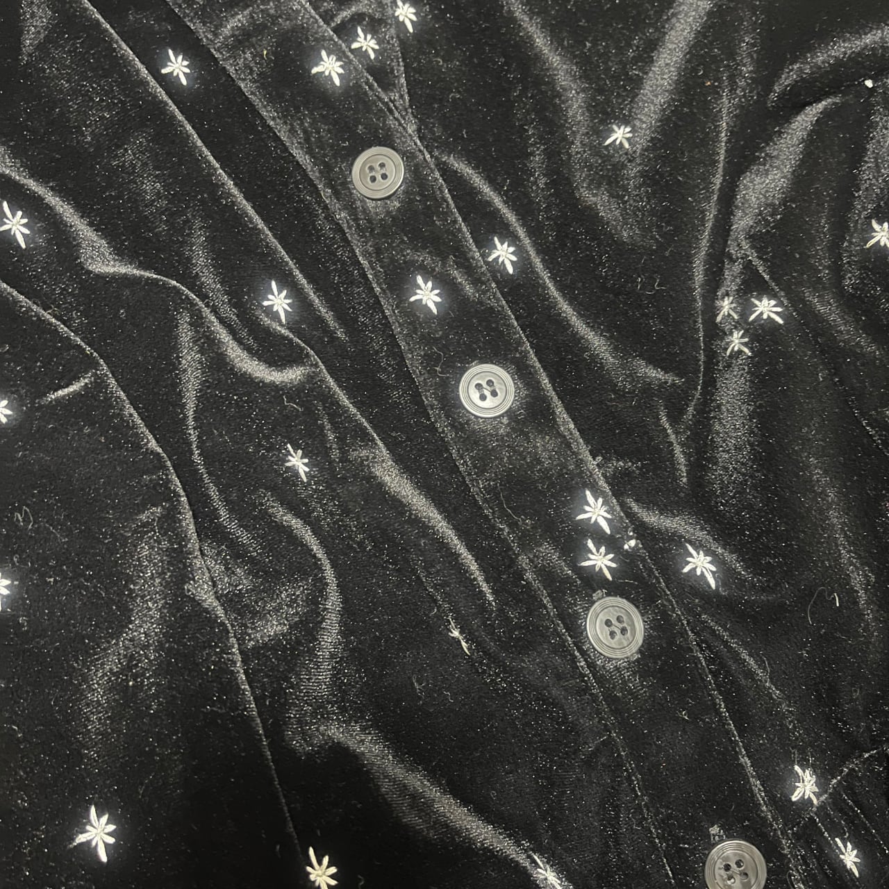 まるで夜空のように神秘的な質感が、着る人を特別な存在へと引き立てます。