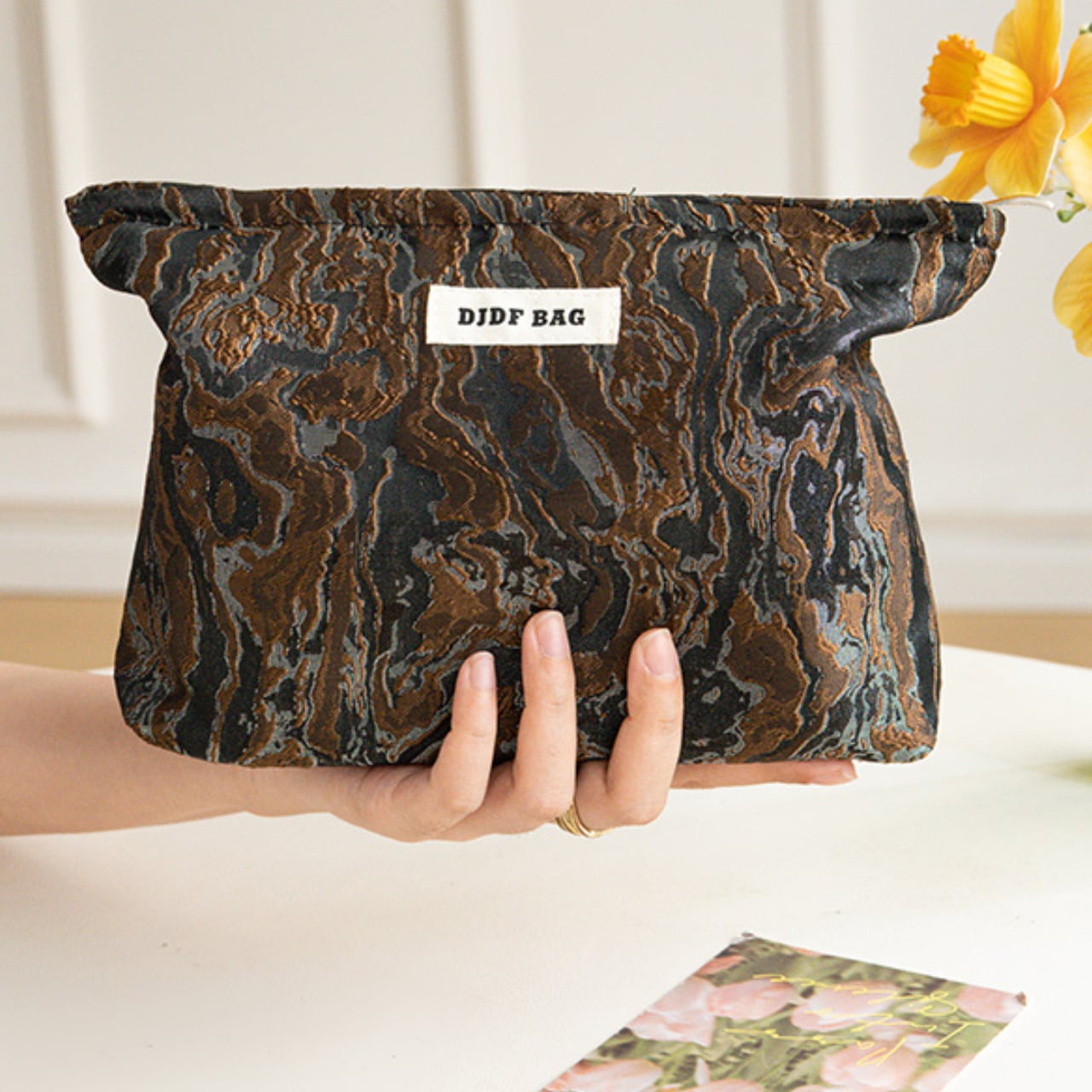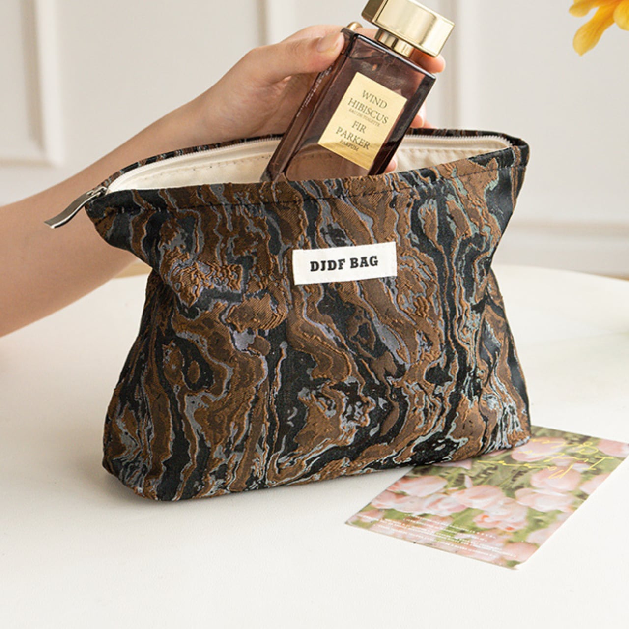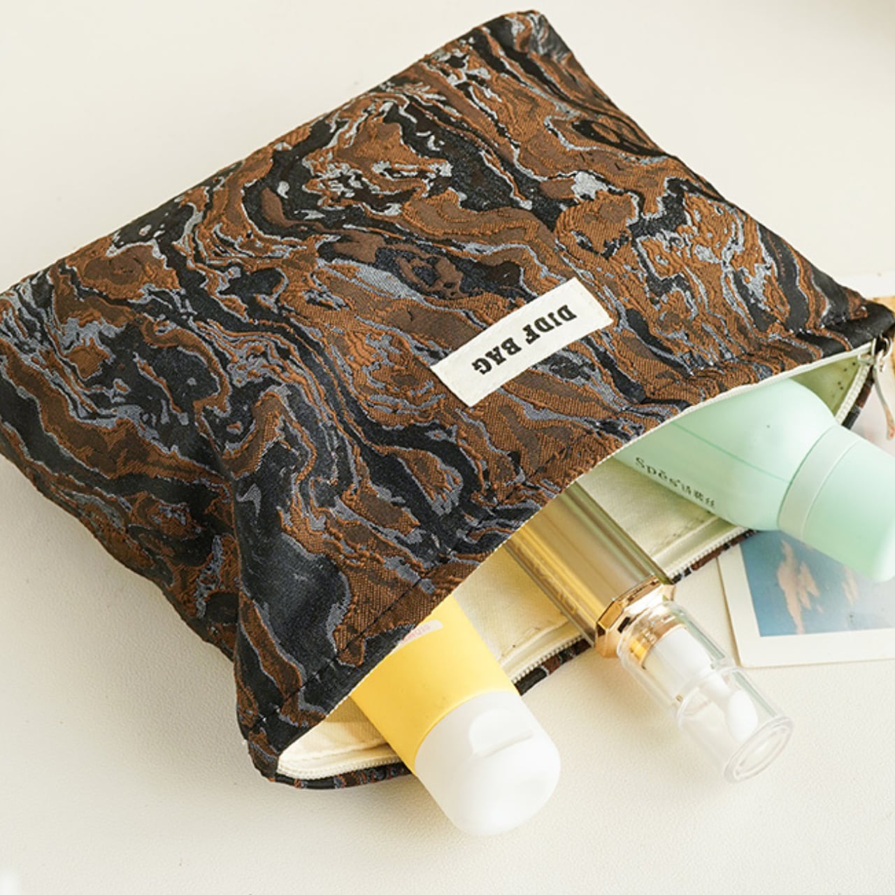 まるで天然の大理石を切り取ったような、アーティスティックなマーブル模様が目を引くポーチ。