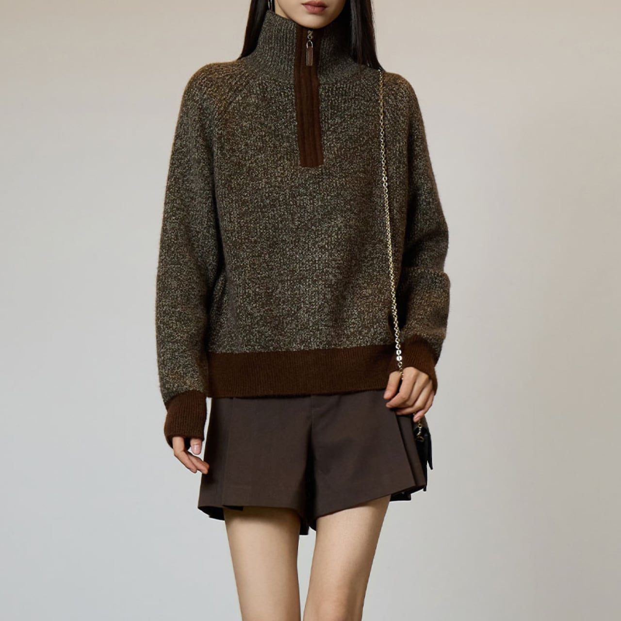 ハーフジップデザインで、開け閉めによって印象の変化も楽しめるアイテムです。