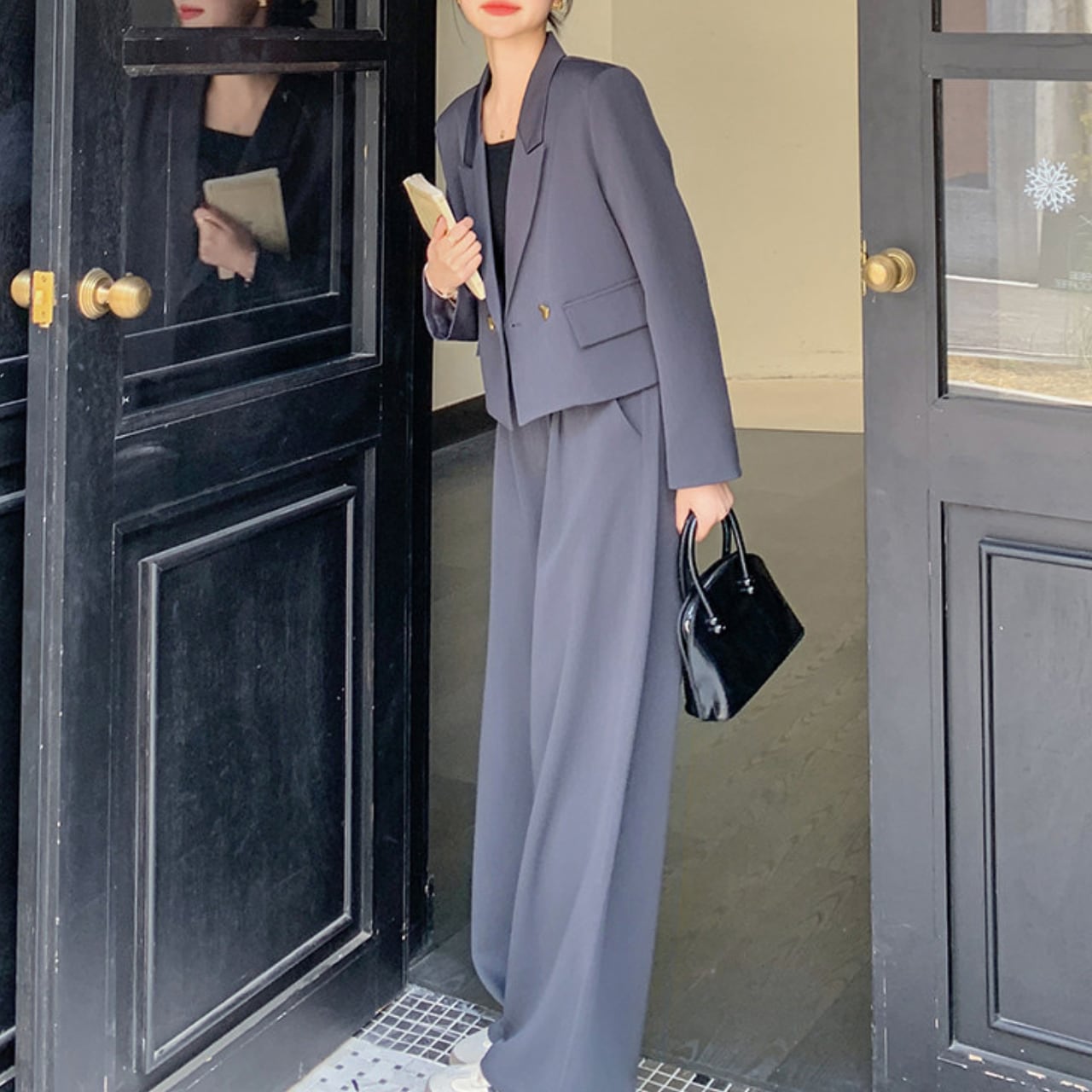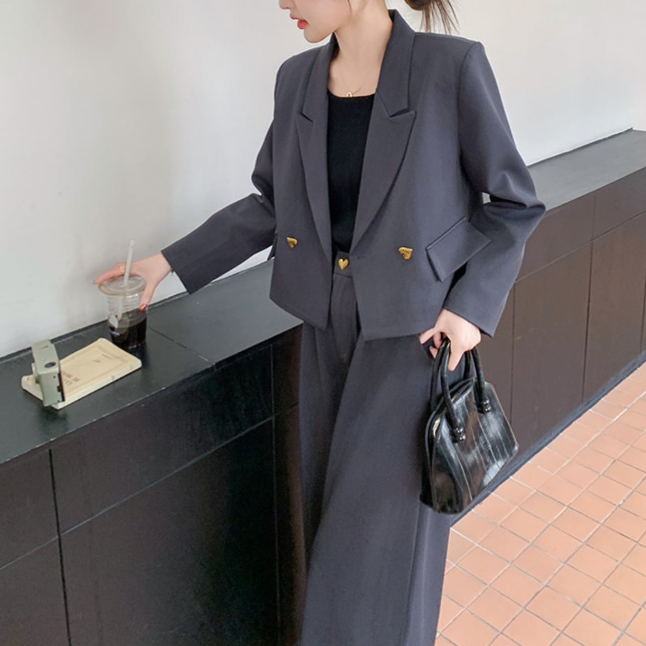 Heart button jacket & wide pants set S1780