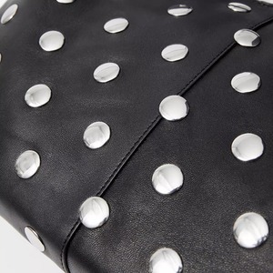 シンプルなコーディネートを一瞬で格上げする、スタッズ使いが印象的なレザーバッグ。