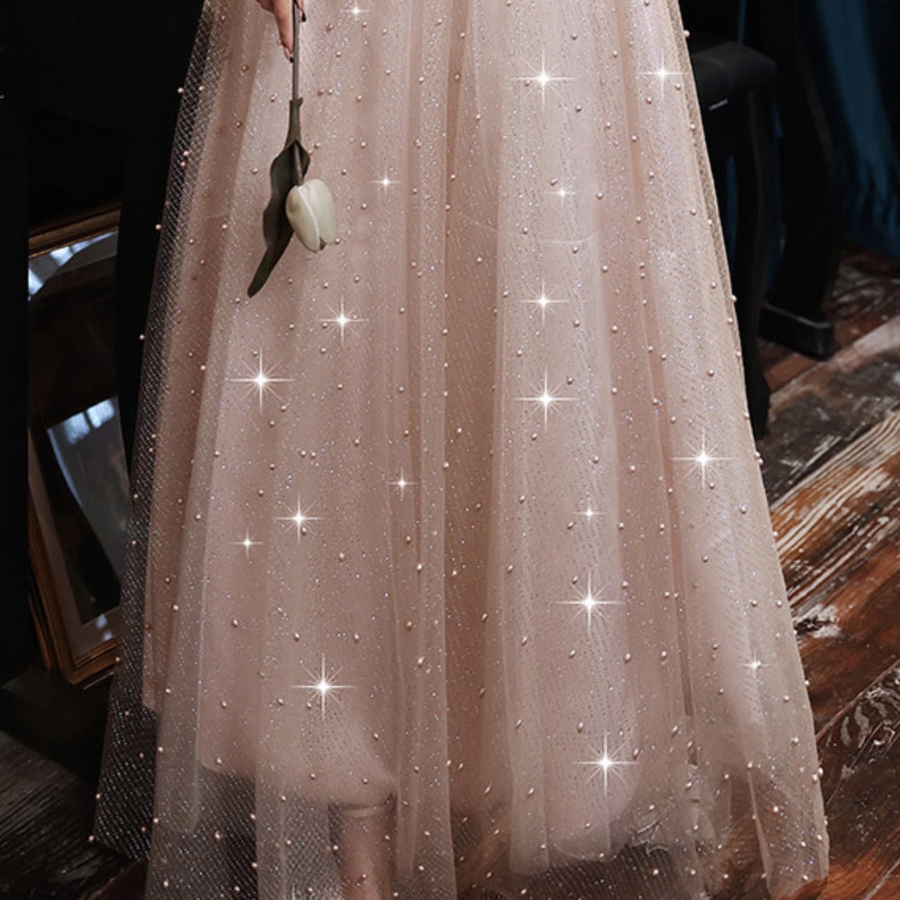 繊細な星型グリッターが生地全体に散りばめられ、一歩踏み出すたびに、まるで星空のように煌めく。