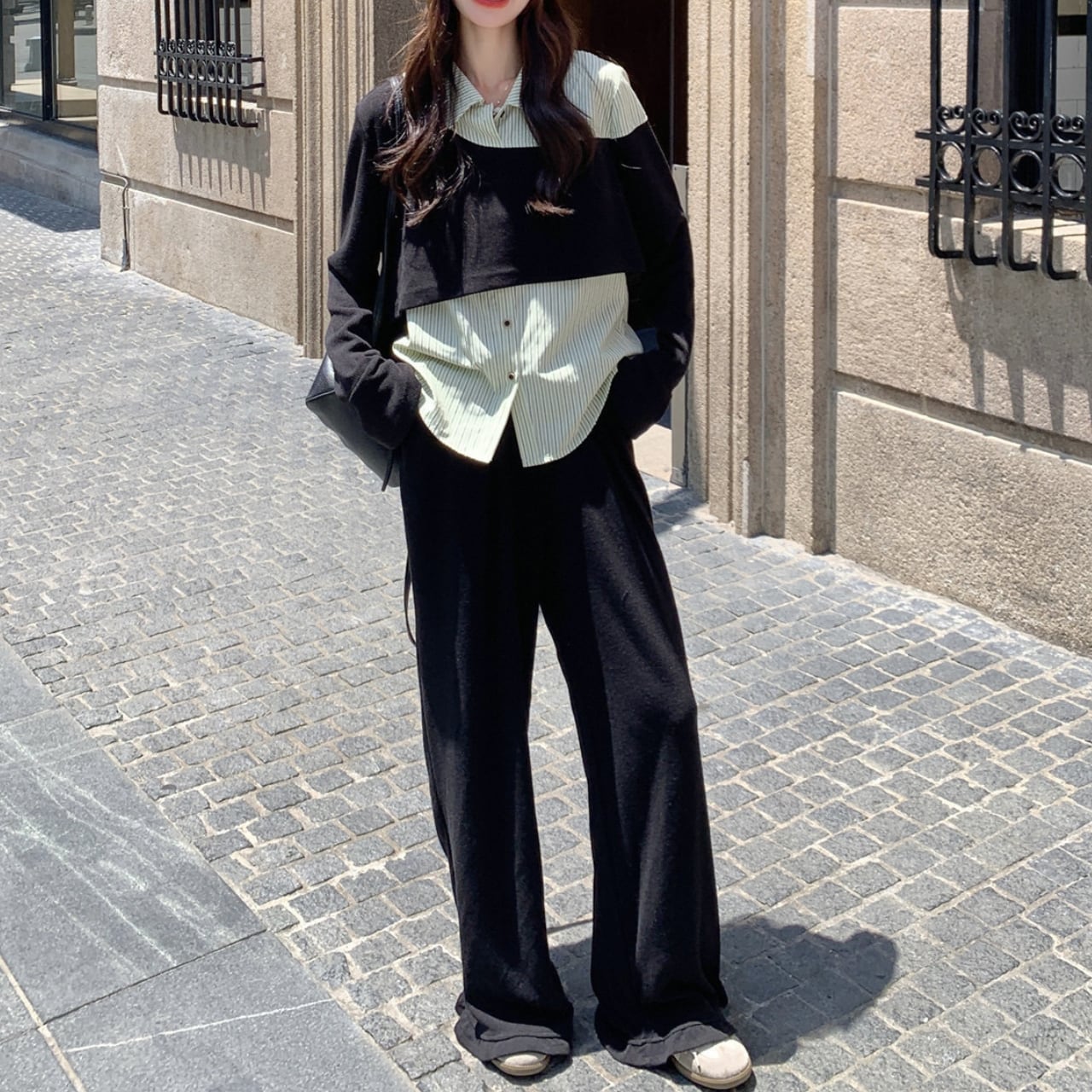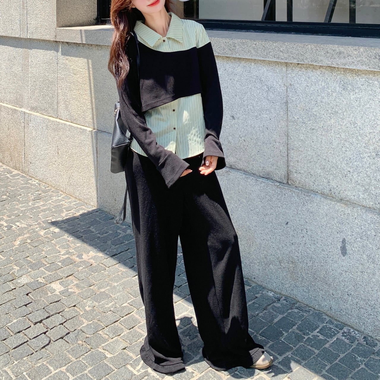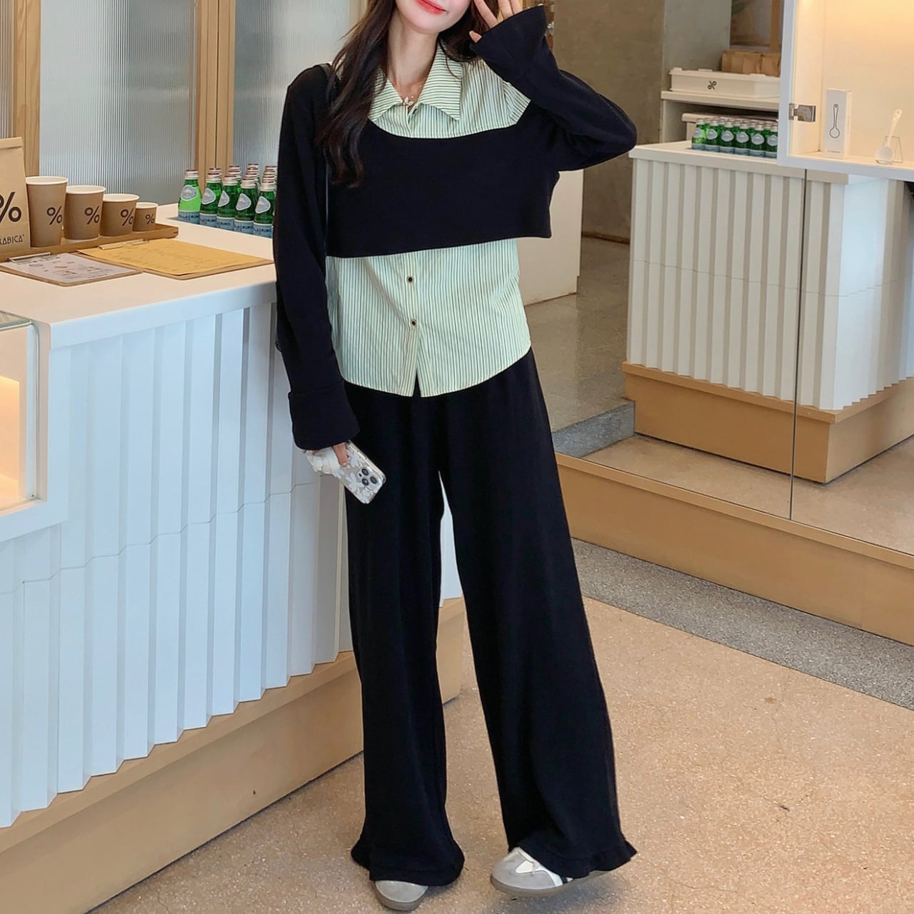 Layered top & pants set S1793