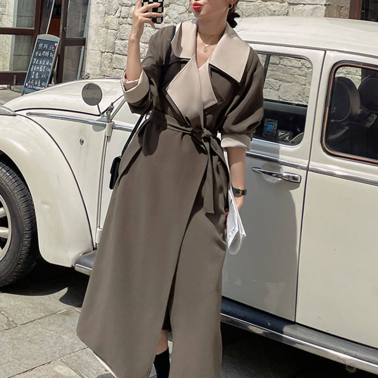 Two-tone trench coat S1797