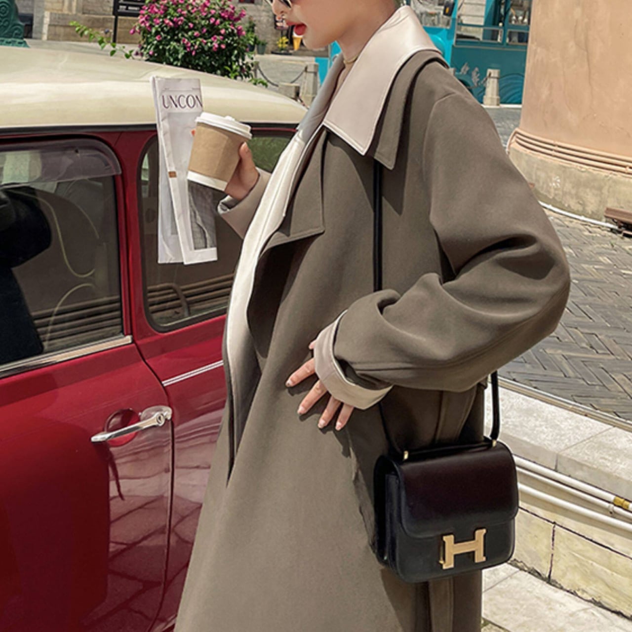 オリーブグレー×ベージュの絶妙な色合わせが、ベーシックながらも個性を主張します。