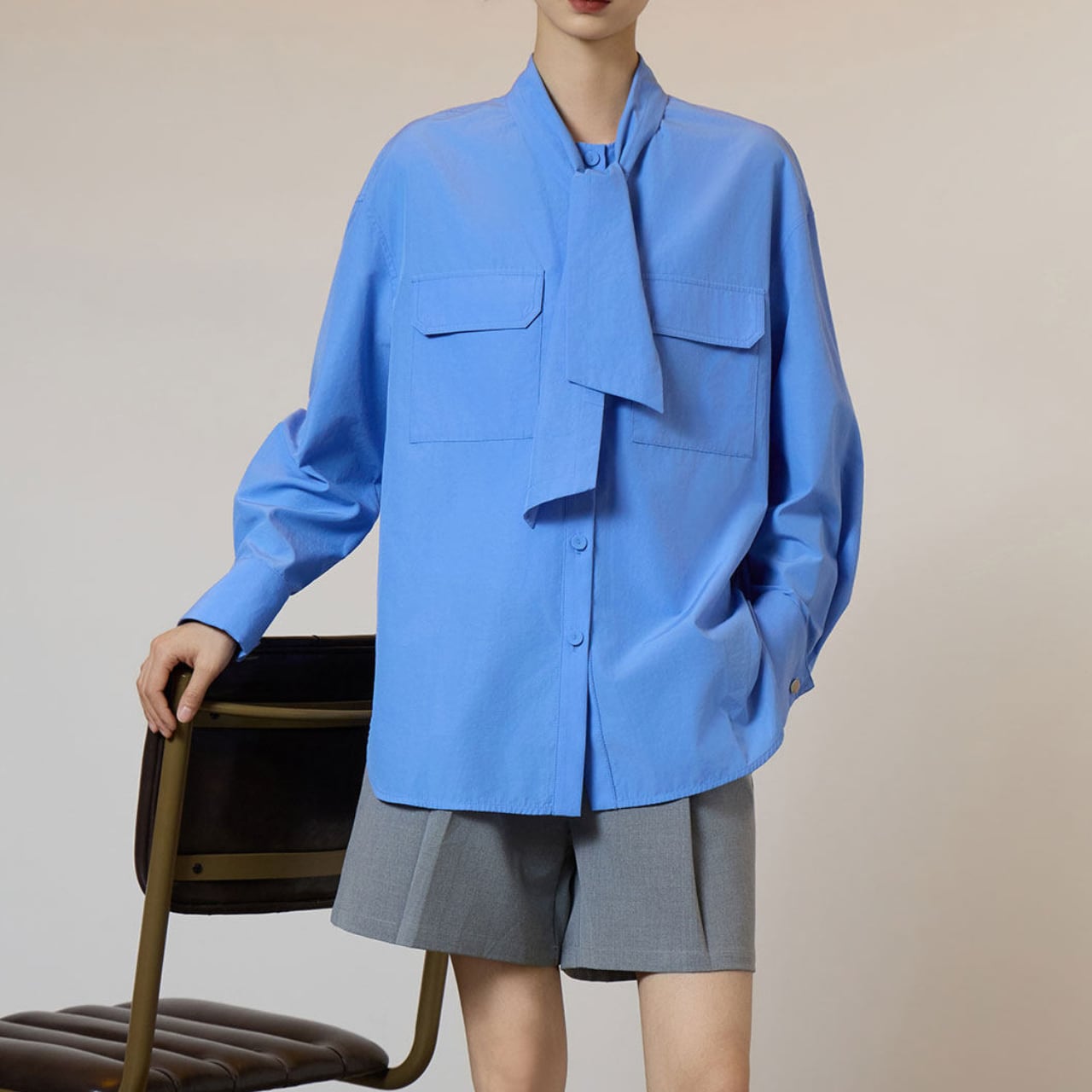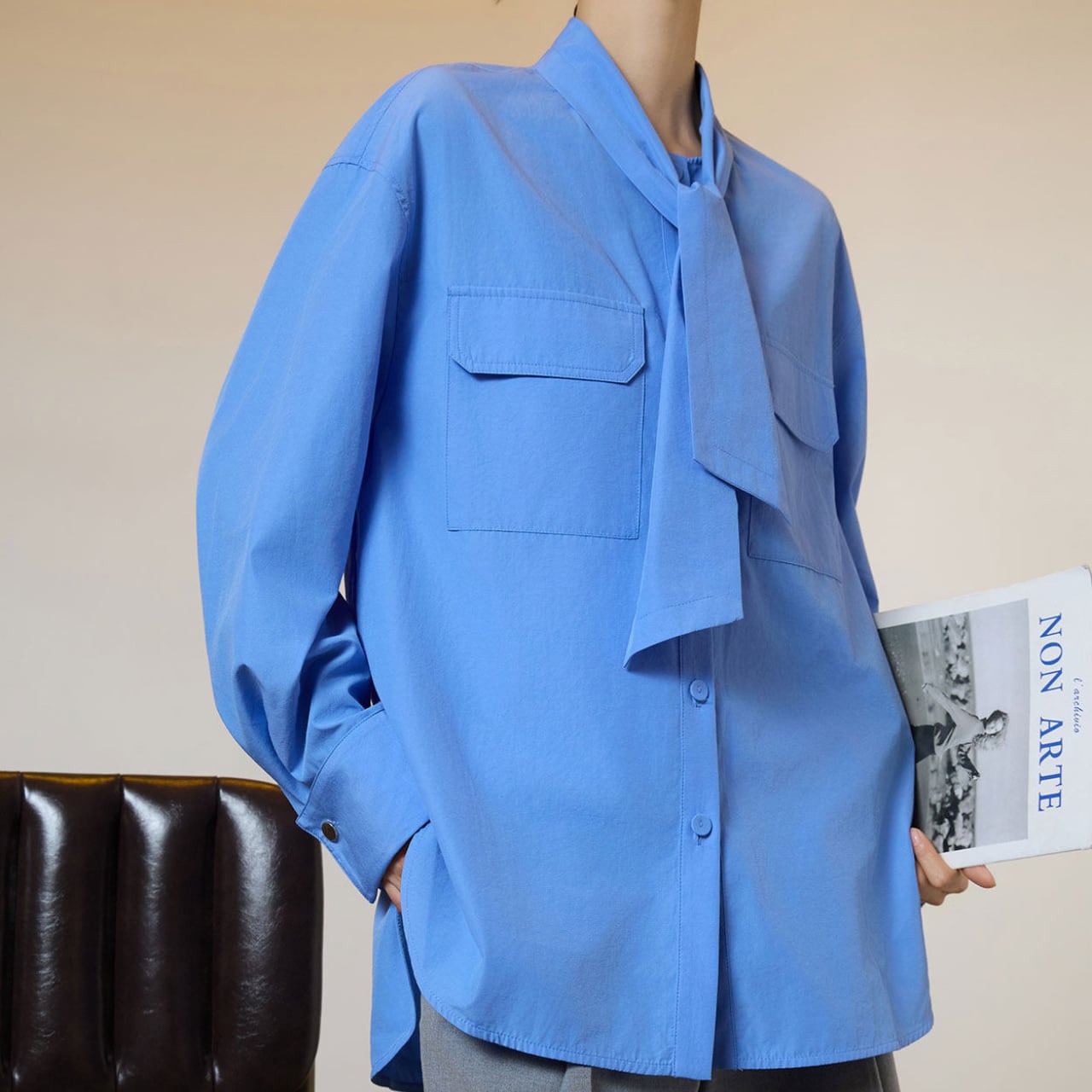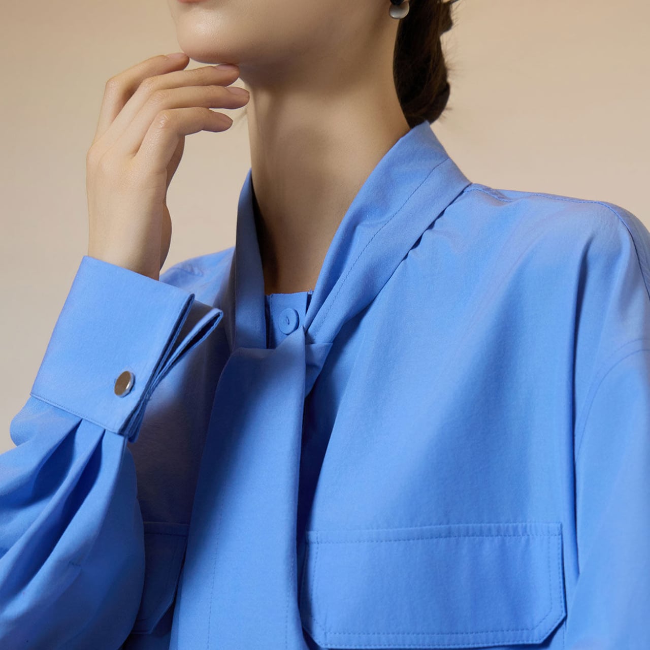 鮮やかなスカイブルーのカラーに、クラシカルなボウタイデザインが絶妙なバランスでマッチ。