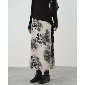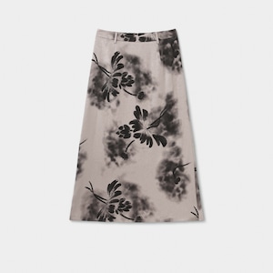 水に溶けたインクが花を描くように、にじみとグラデーションで表現されたフラワープリントが印象的なミディ丈スカート。
