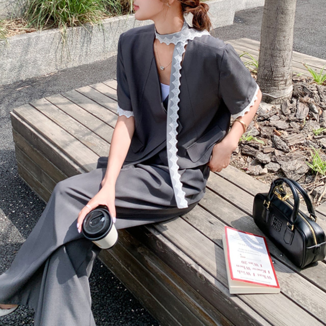 ジャケット&ワイドレッグパンツセット。