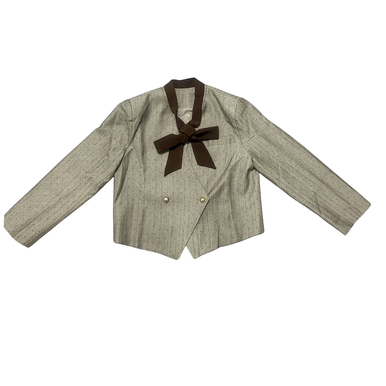 ドット柄とブラウンのリボンが絶妙に絡み合う、大人セットアップ。