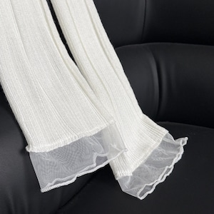 襟元と袖口から覗くメッシュのフリルが、まるで別々のアイテムをレイヤードしたかのような奥行きを生み出します。