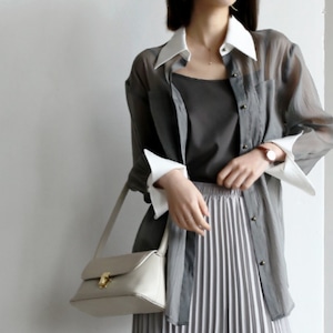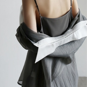 シアーシャツとキャミソールの2点セットで、レイヤードスタイルが一瞬で完成します。