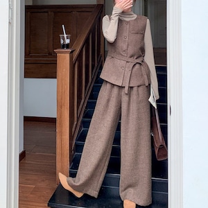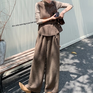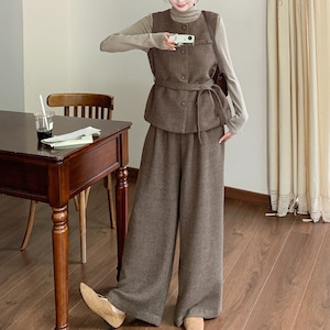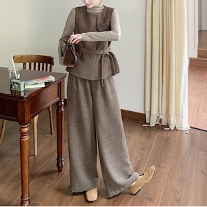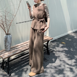 Shirt, vest and wide leg pants set S1830