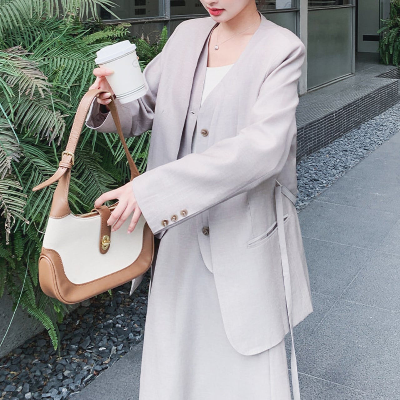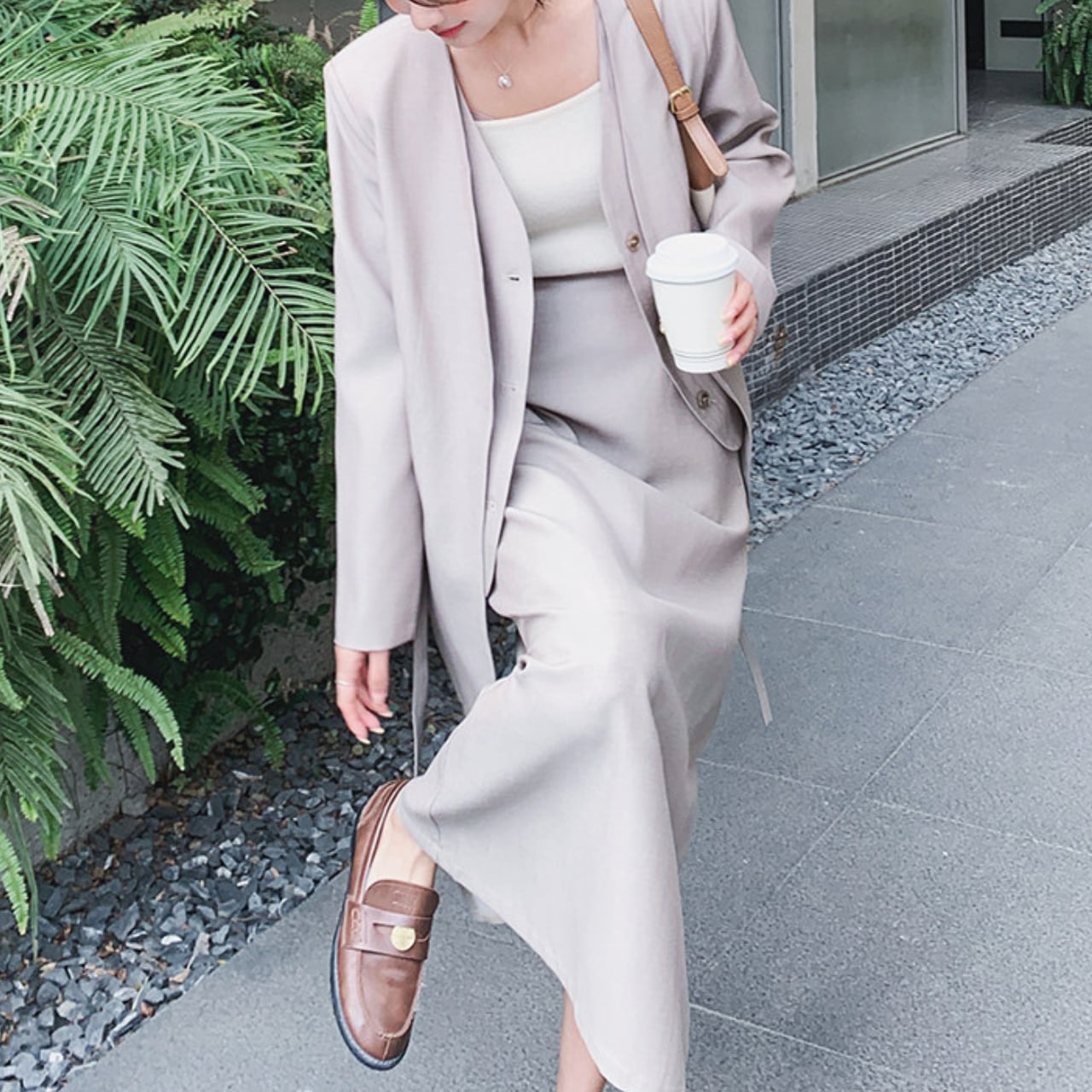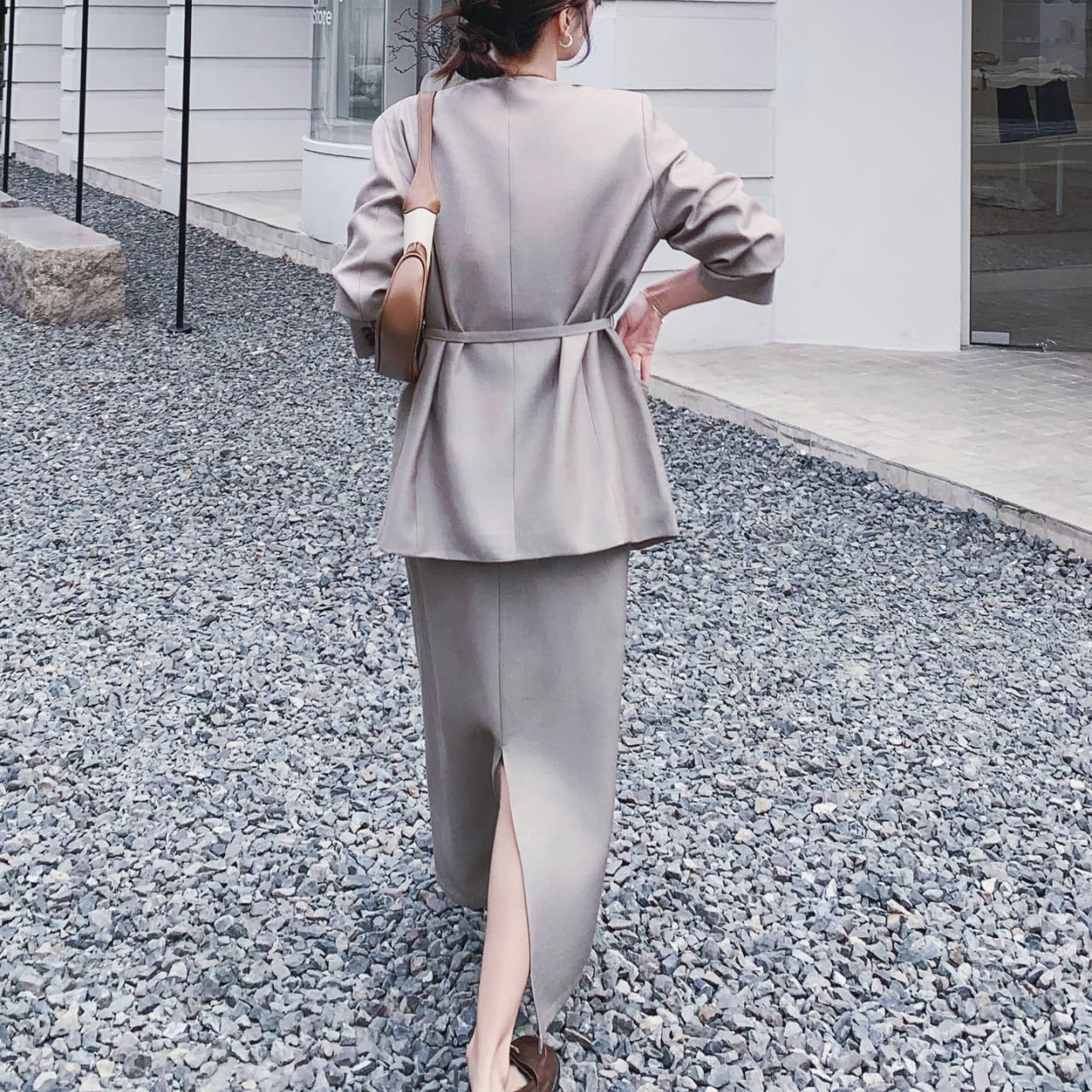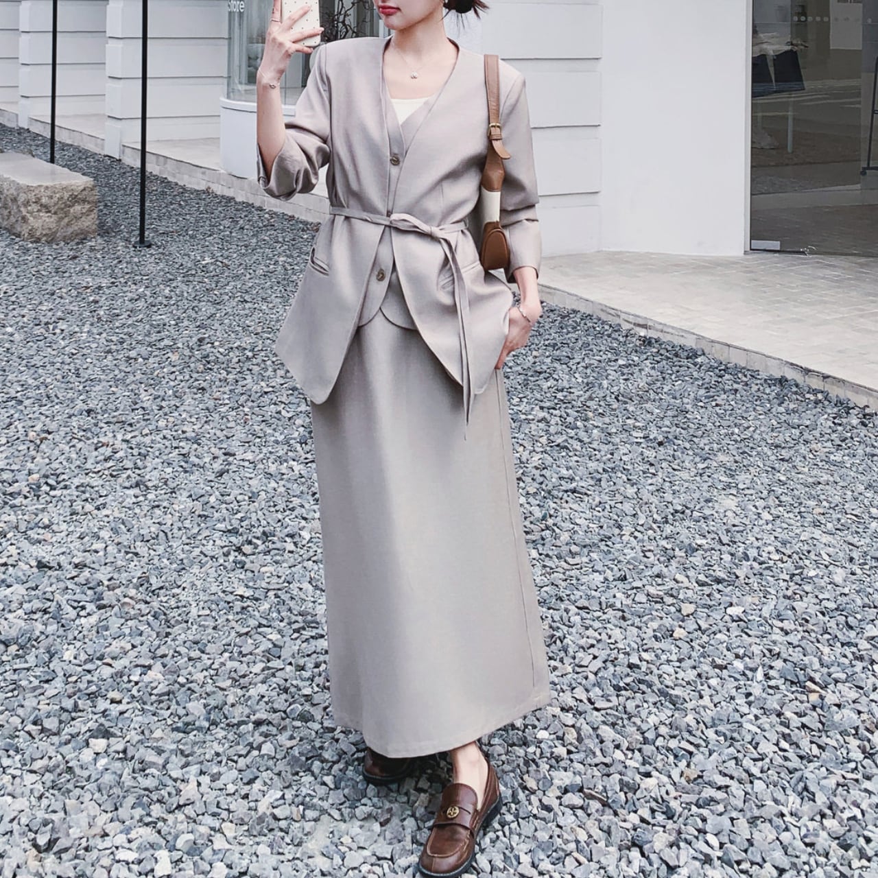 ベスト、ジャケット、スカートが揃った、スリーピースセット。