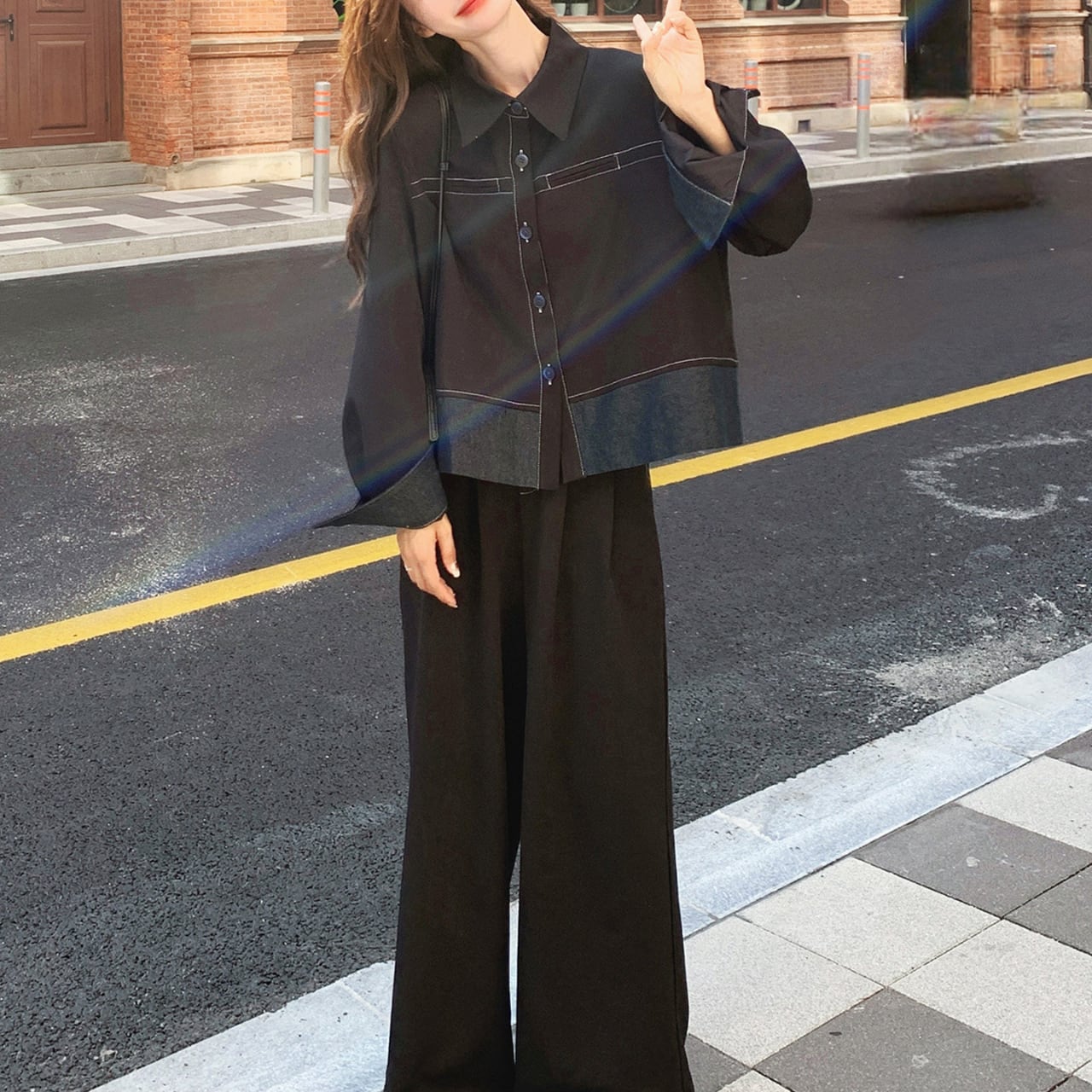 シャツとワイドパンツを上下揃えることで生まれる、縦長の美しいシルエット。
