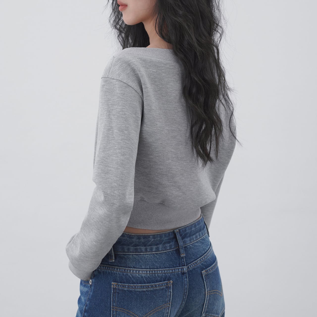 カジュアルな素材感のまま、鎖骨と肩のラインをさりげなく見せる大人のスウェット。