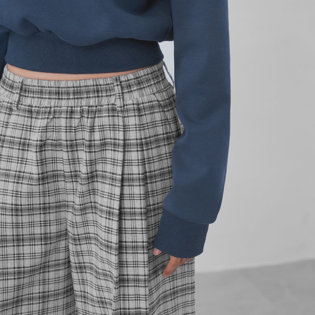 右に寄せても、左に流しても、自分のスタイルで着こなせるのが、このトップスの自由さです。さりげないメランジ感が肌なじみのよいグレーはどんなボトムスにも馴染む万能カラー。