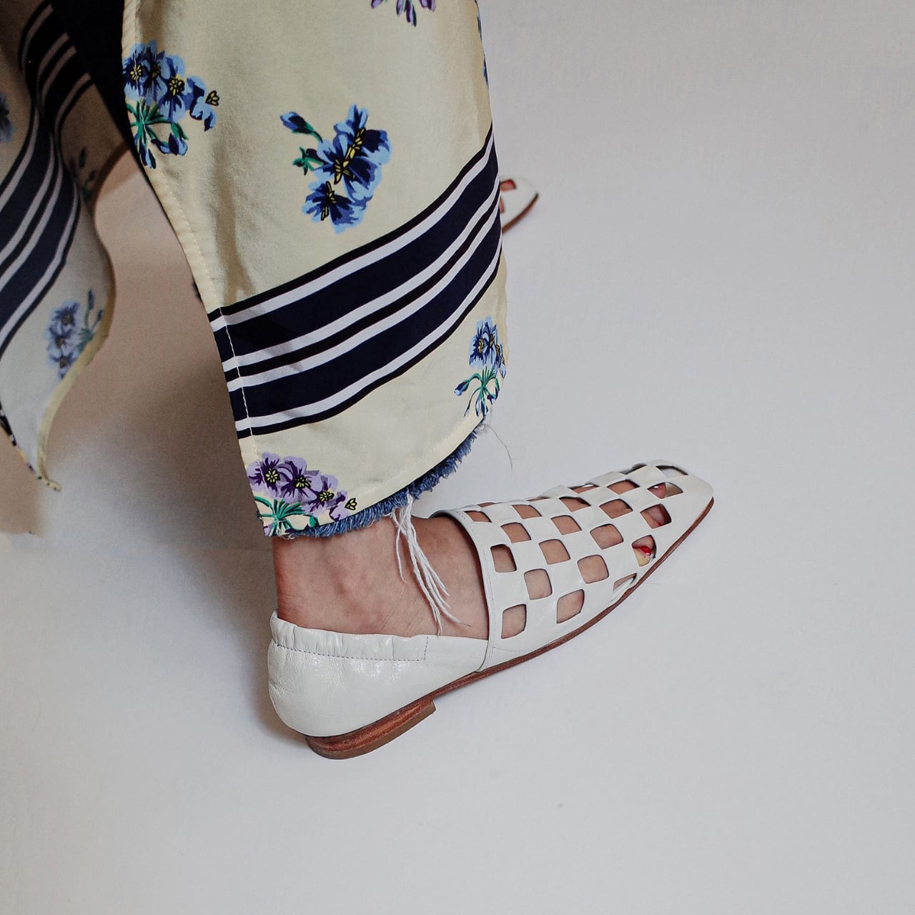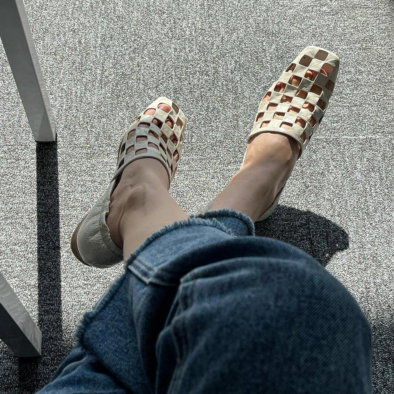 光と影が交差するメッシュの表情は、歩くたびに揺らぎ、足元に知的な抜け感を生み出します。