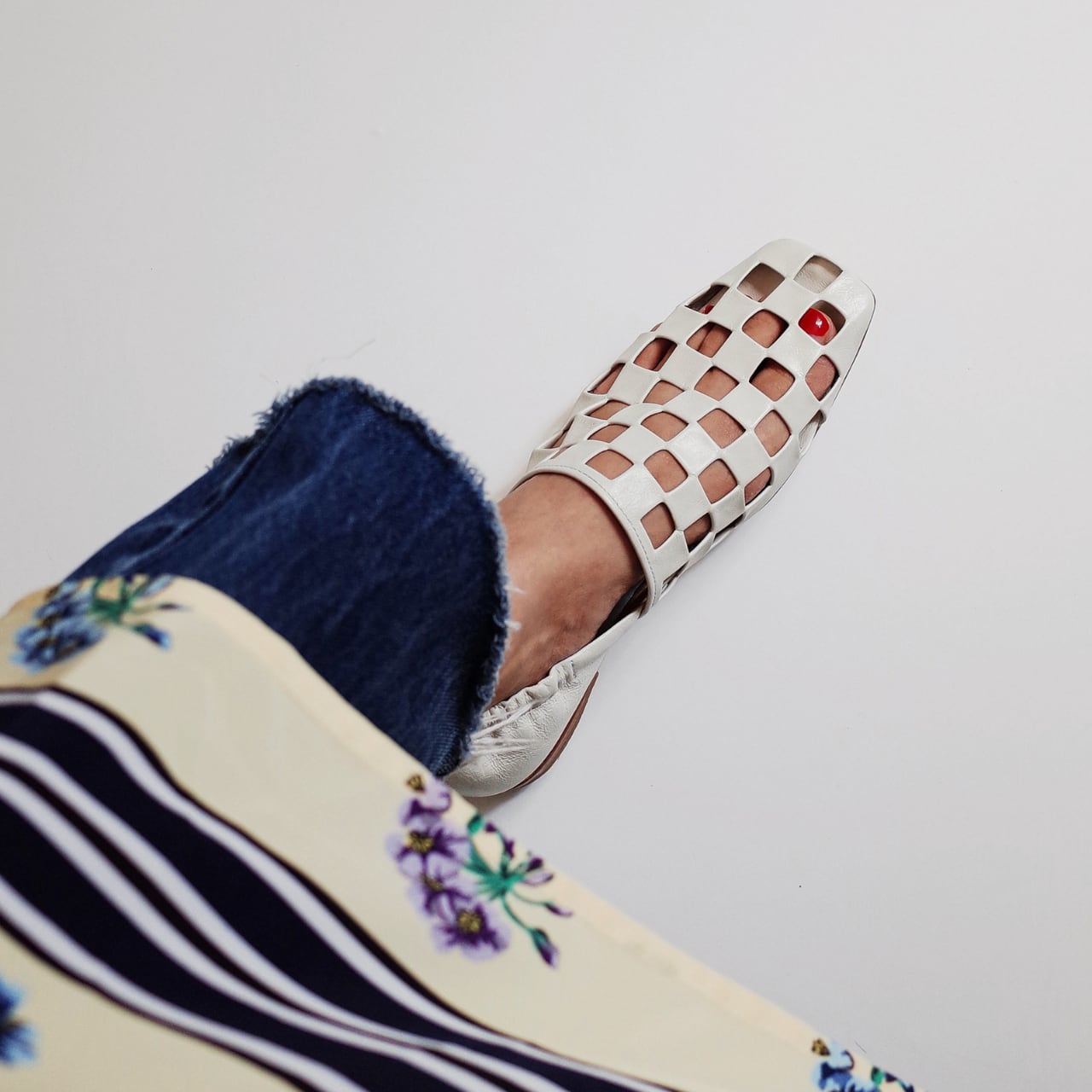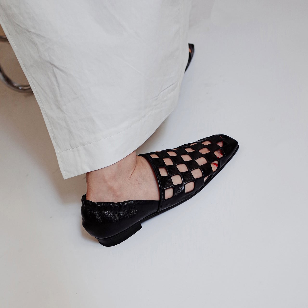 スクエアトゥが放つ、凛としたモードな輪郭線に、透け感のあるメッシュデザインを組み合わせることで、ローファーのきちんと感はそのままに、軽やかで今っぽい表情に仕上げました。