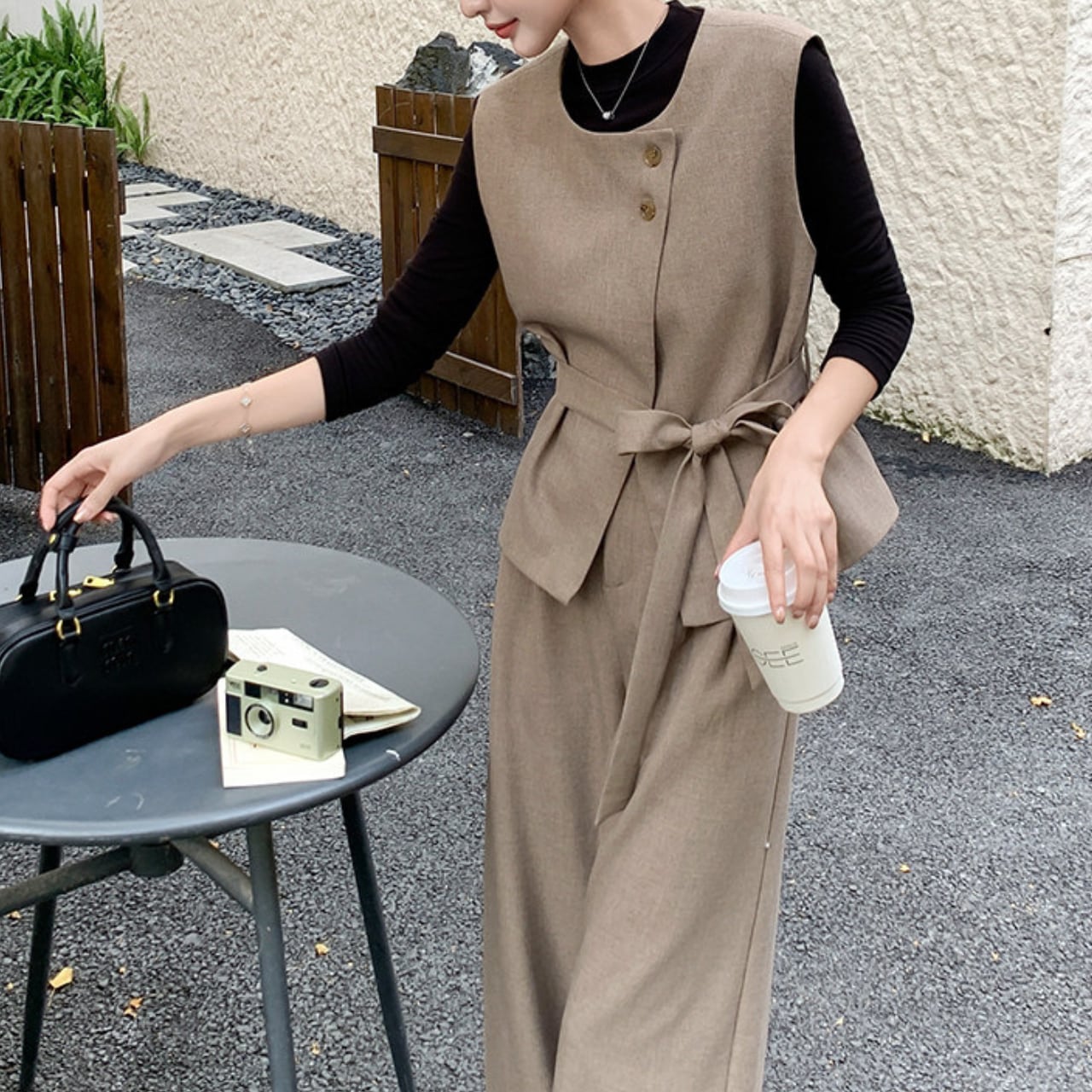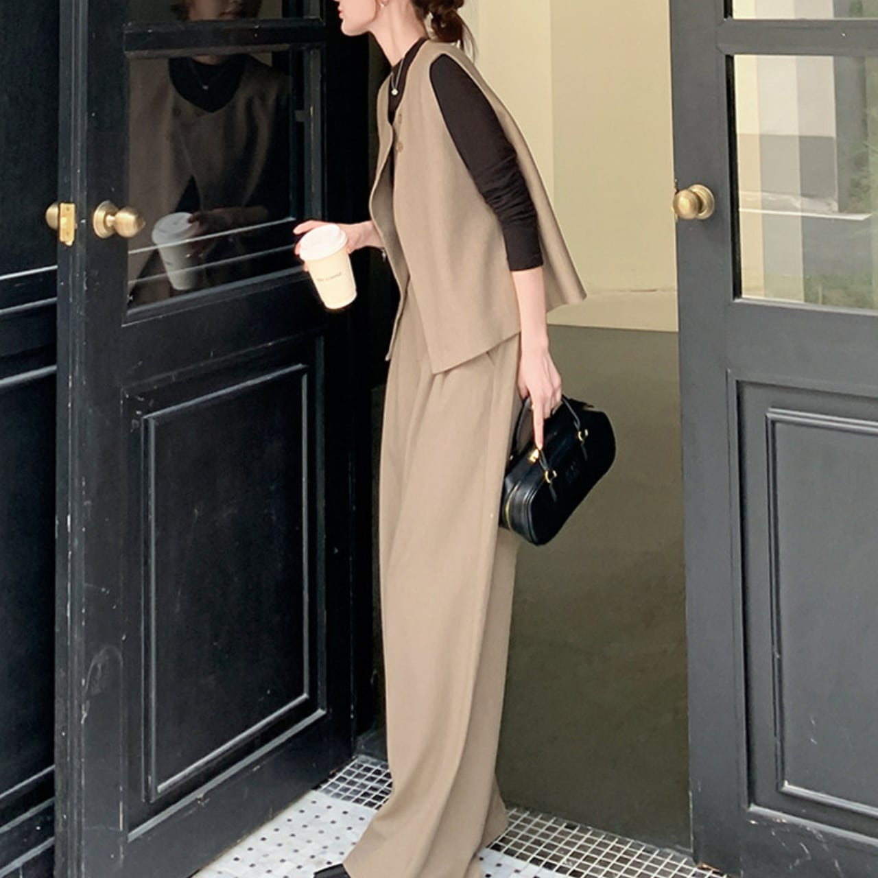 そんな着こなしを叶えてくれるウエストタイベスト×ワイドパンツのセットアップ。