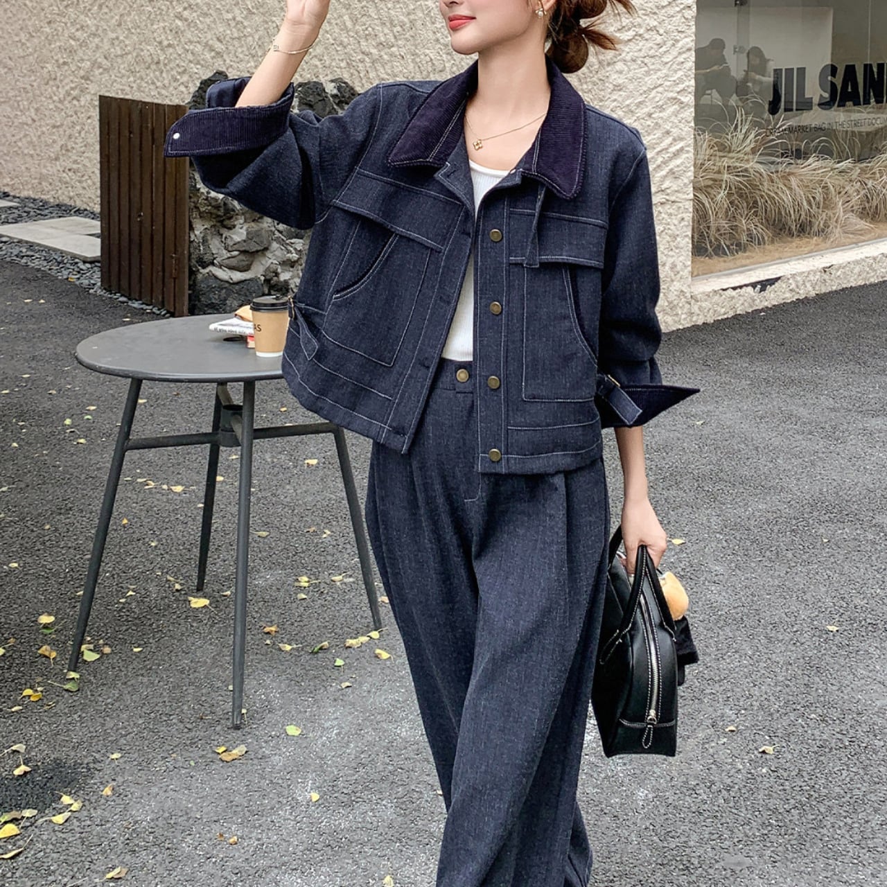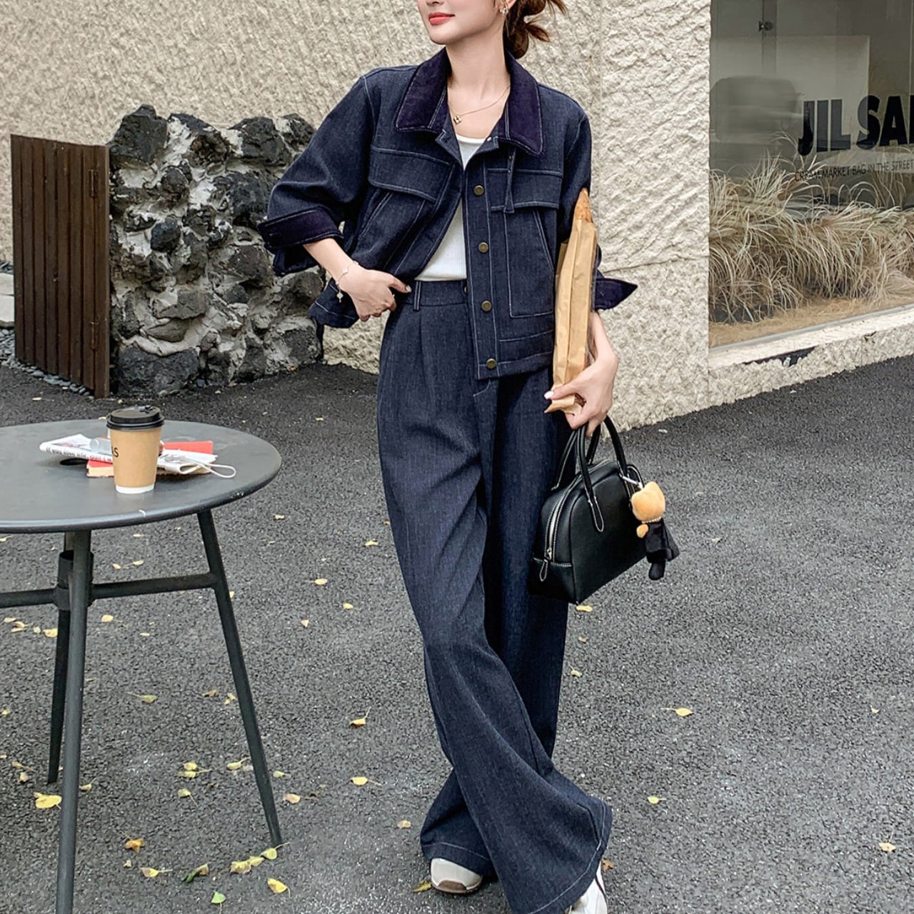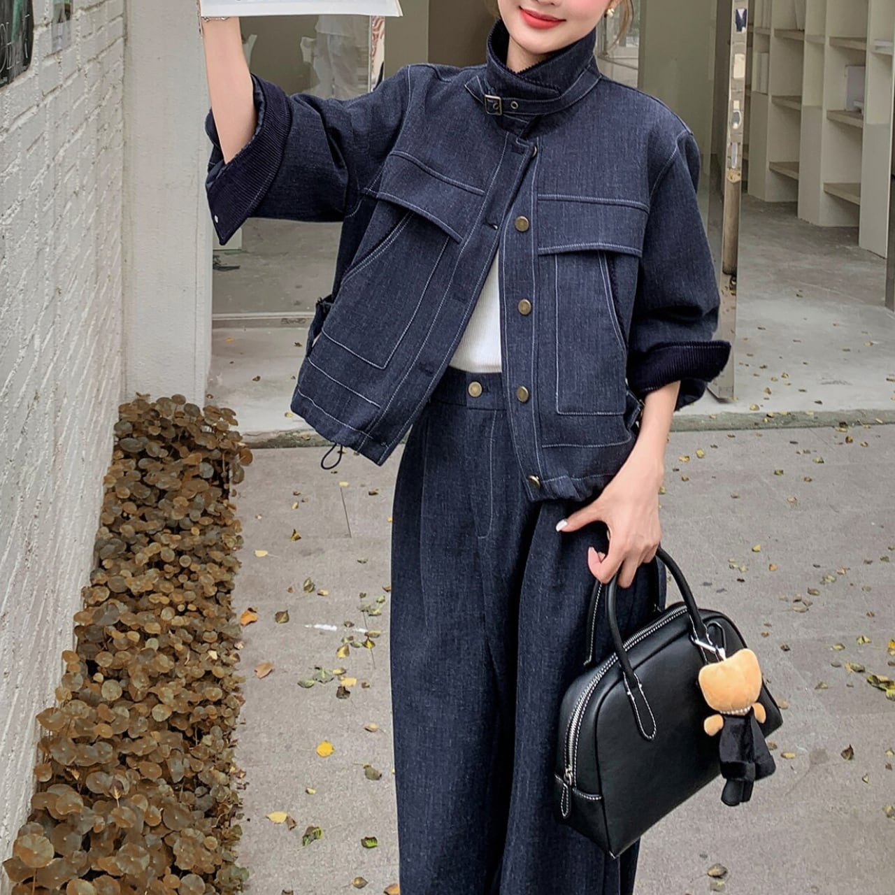 程よく力の抜けたデニムスタイルに、洗練された大人のエッセンスをプラスしたジャケット&ワイドパンツセット。